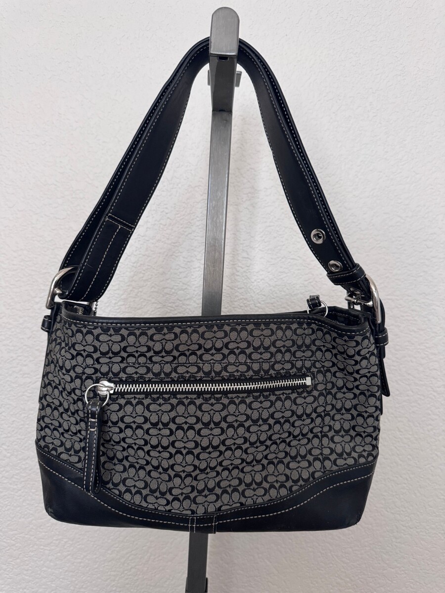 Vintage COACH Signature C Jacquard Black Hobo F10945 Handbag