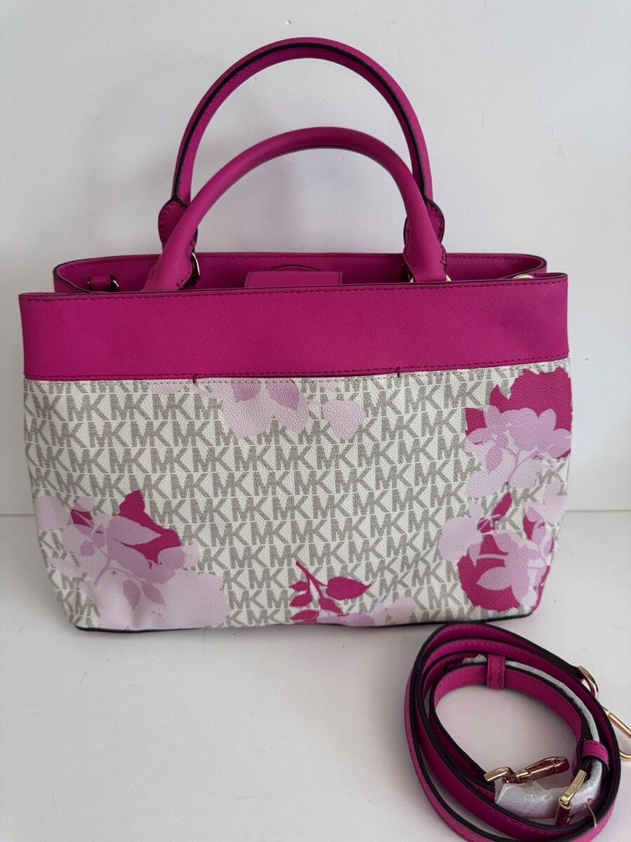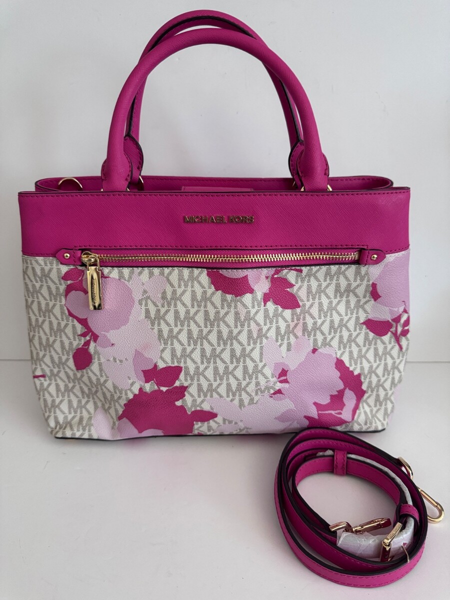 Michael Kors Hailee Satchel Crossbody Tote Pink Floral Handbag Purse