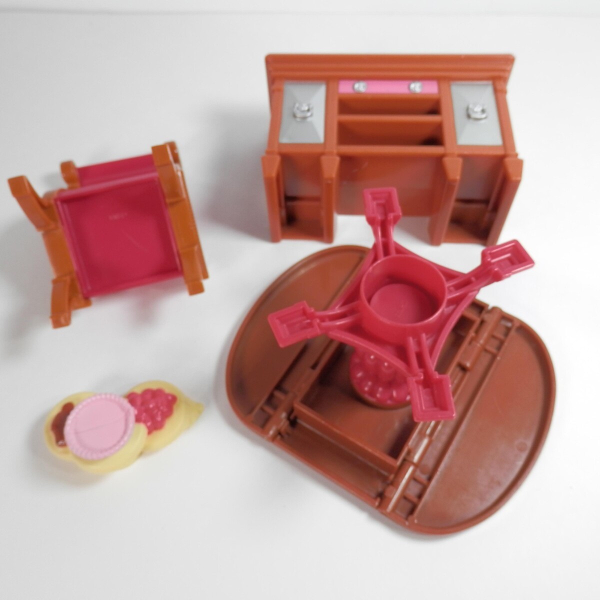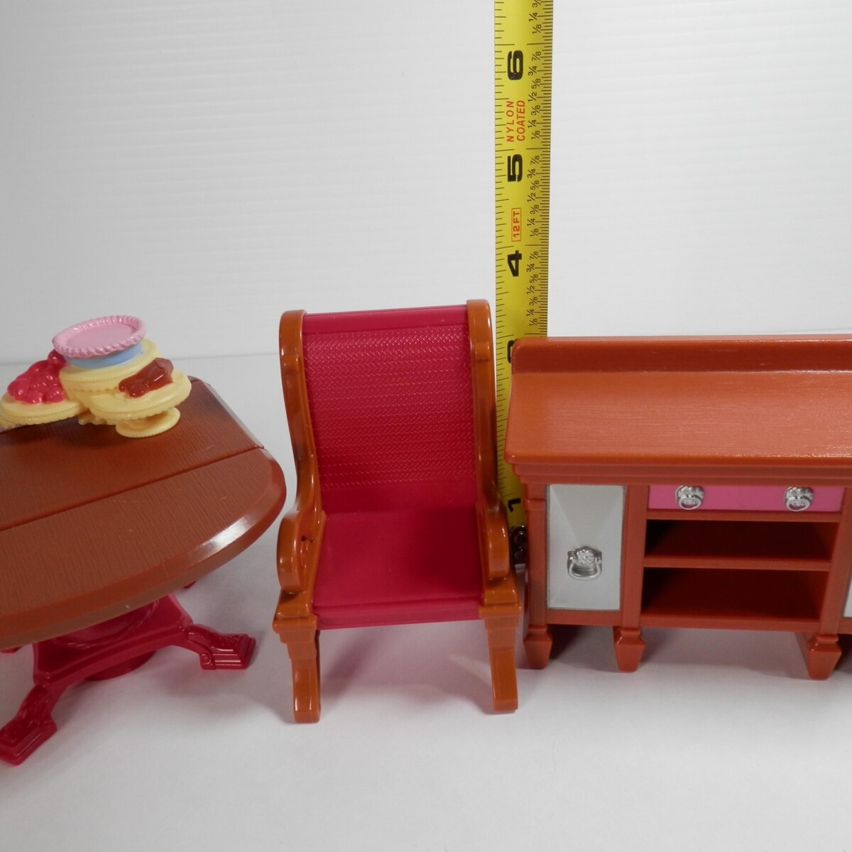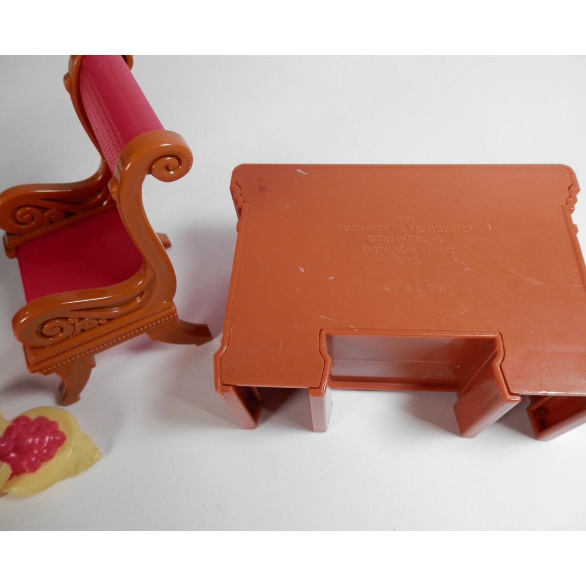 2010 Fisher Price Loving Family Dining Room Chair Table Hutch N7299 Pink Brown