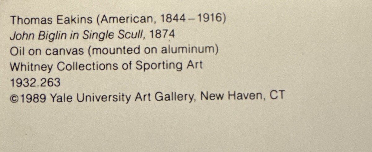 1874 John Biglin in Single Scull by Thomas Eakins New Haven CT Postcard