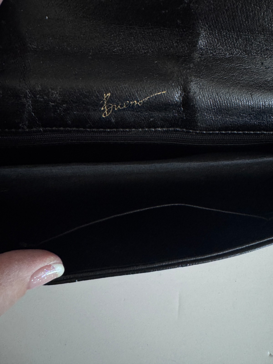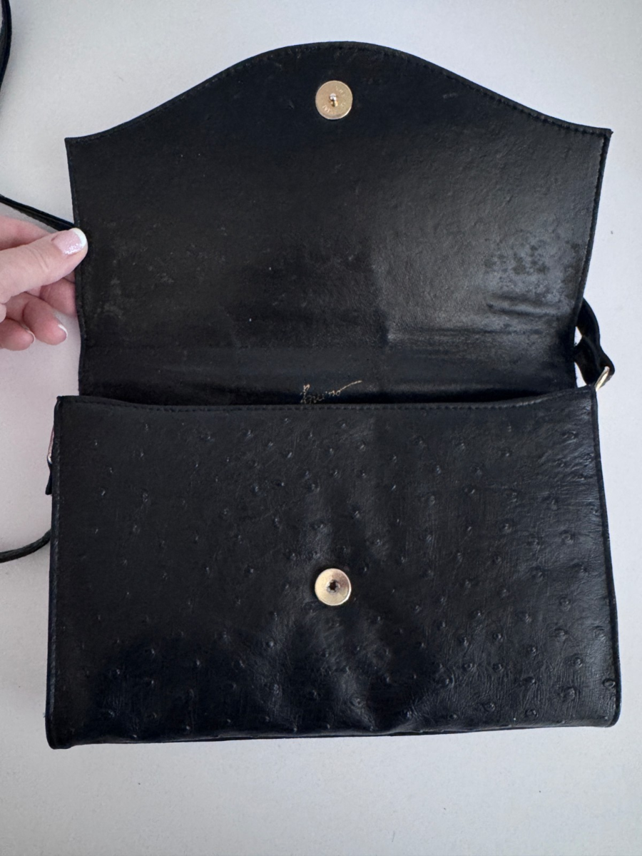 Vintage Bueno Collection Black Ostrich Crossbody Faux Leather Handbag