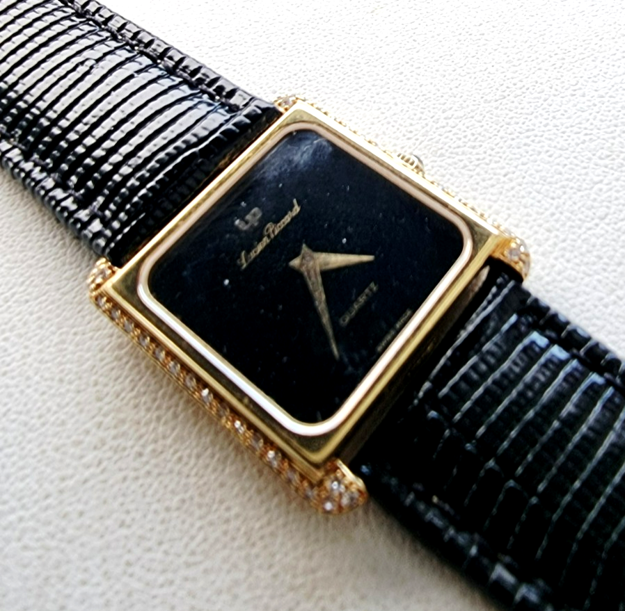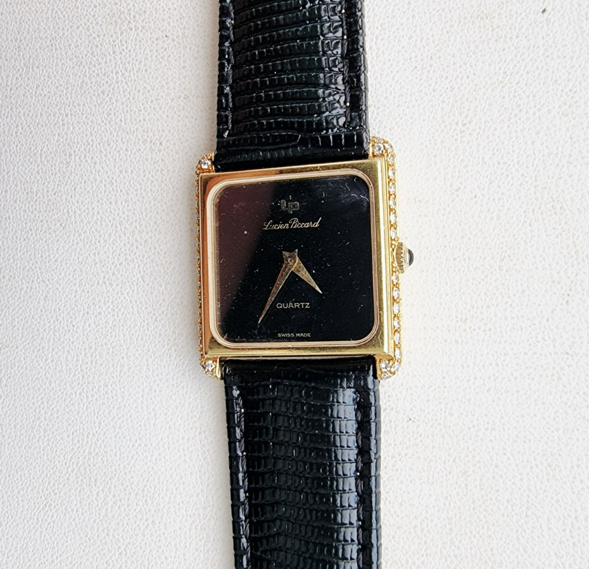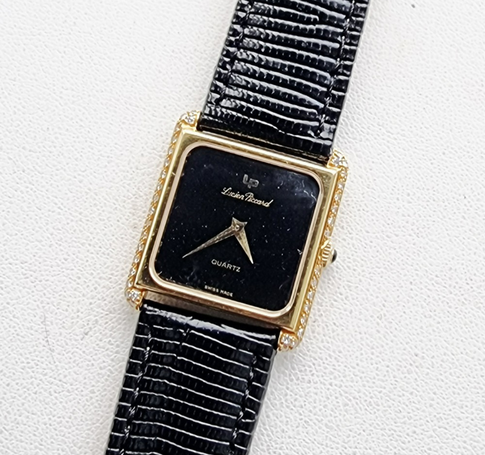 LUCIEN PICCARD 18K YELLOW GOLD NATURAL DIAMOND WRISTWATCH 36 diamonds 36g