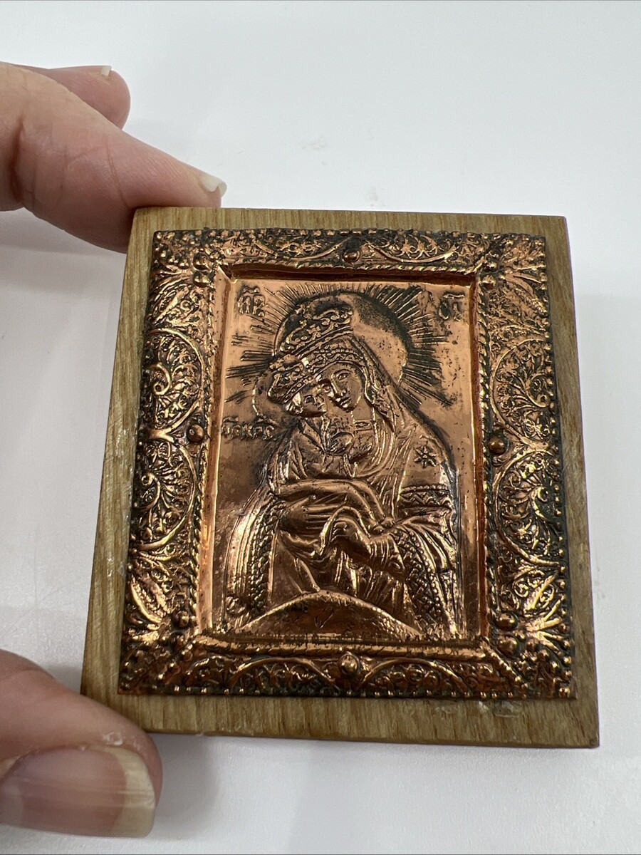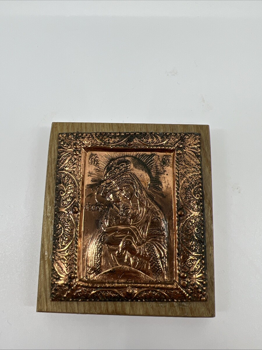 VTNG Russian Icon Copper Repousse Virgin Mary/Modonna & Child Religious Orthodox