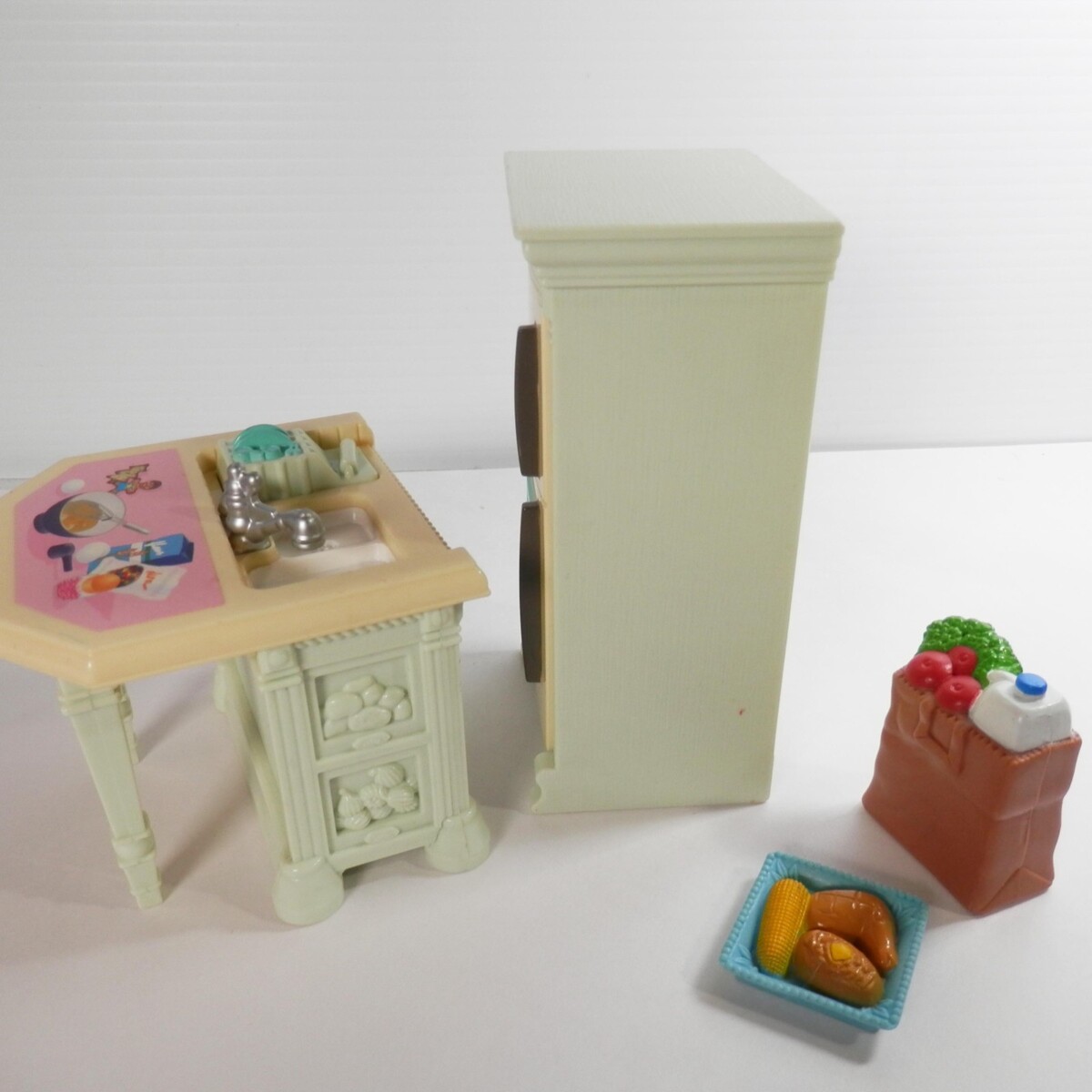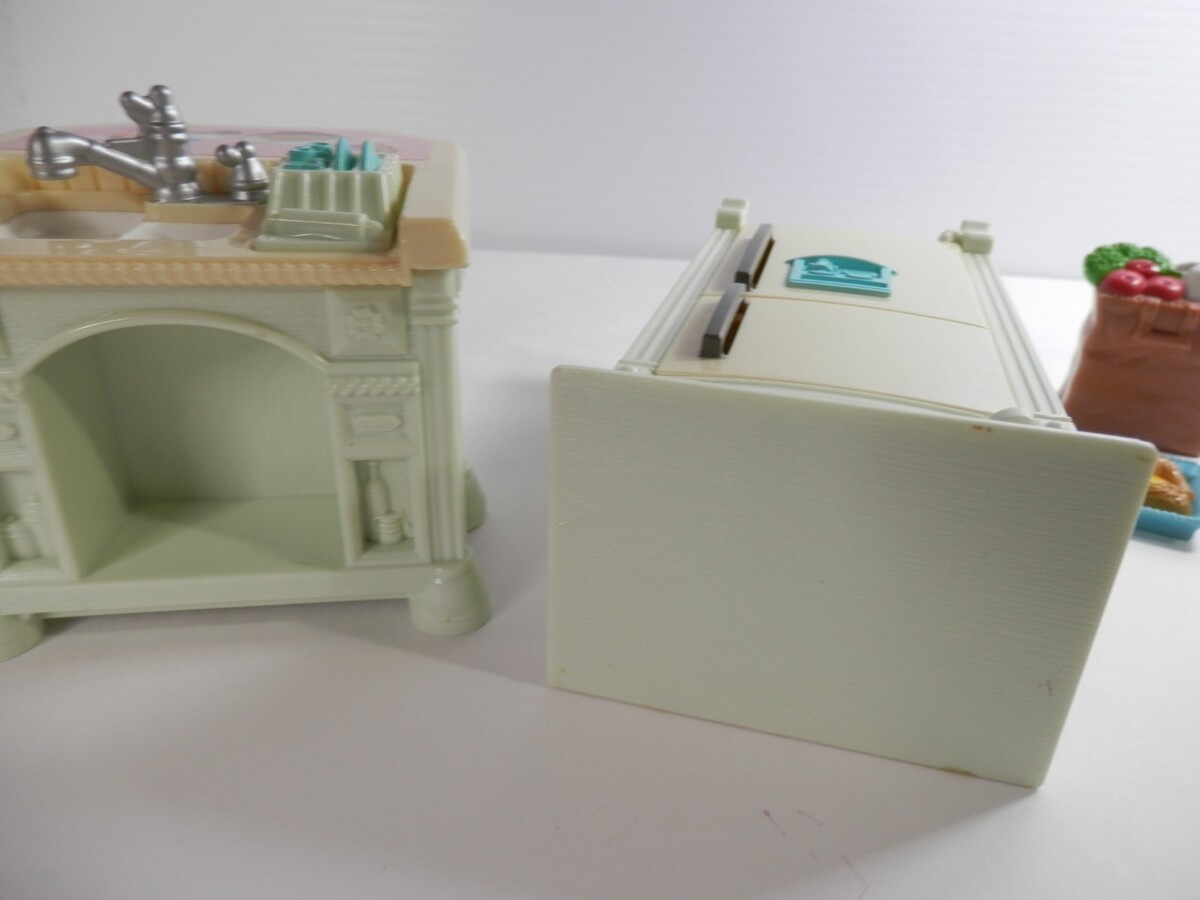 Fisher Price Loving Family Kitchen Green Fridge Sink Groceries Holiday Dollhouse