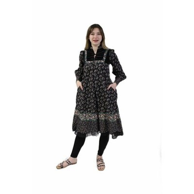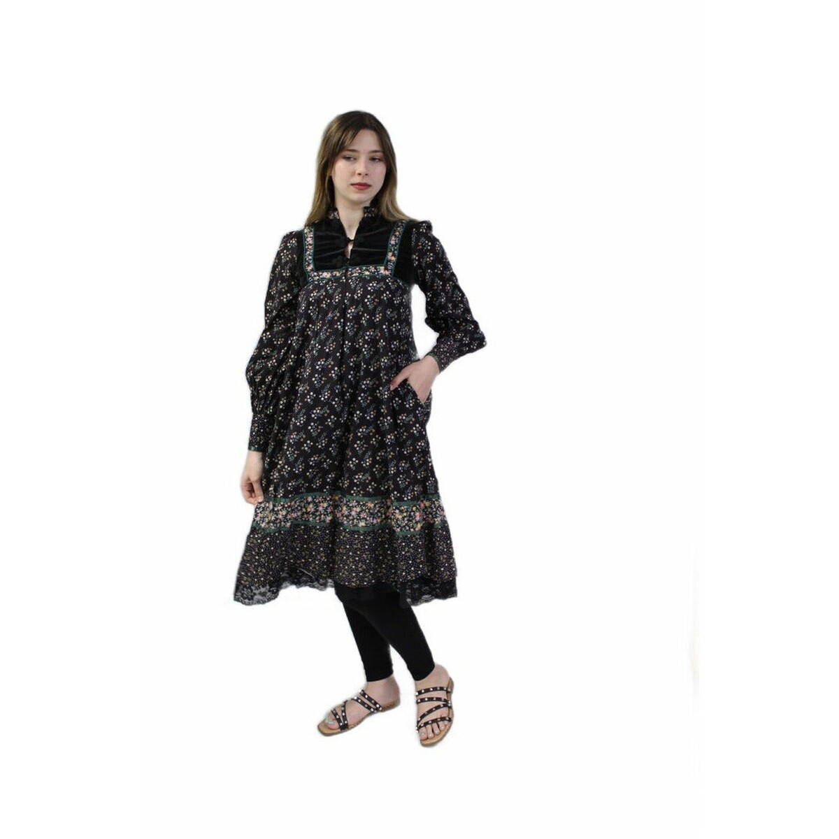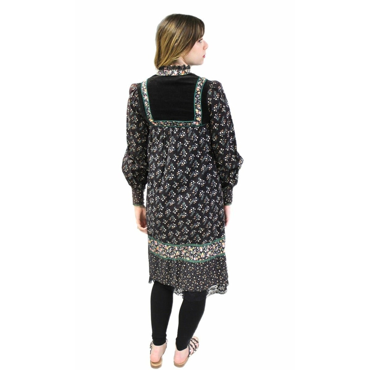 VTG 1970s Jessica McClintock Gunne Sax Black Floral Cottagecore Dress Sz Xs/S