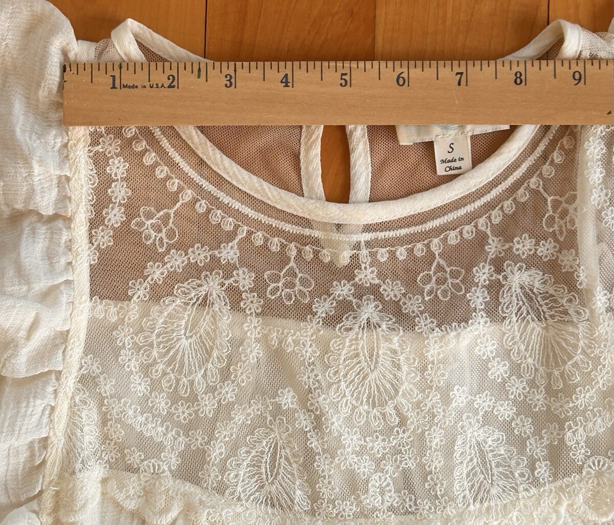 Jun & Ivy Gauze Lace Top Flutter Sleeve Ruffle Babydoll Cream Sm Top Cottagecore