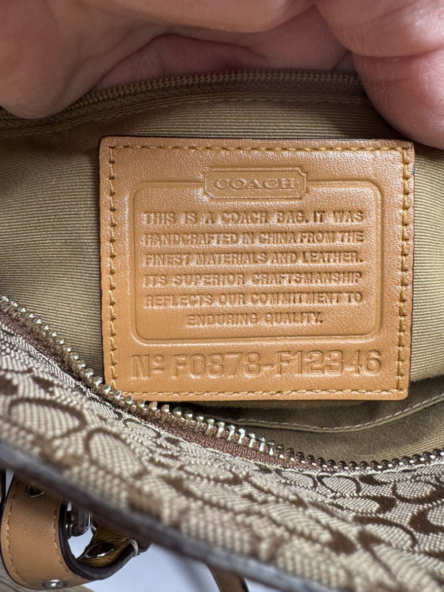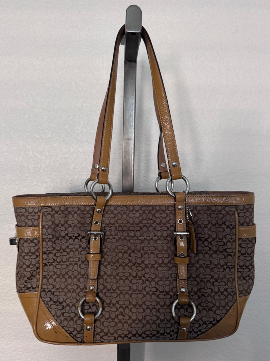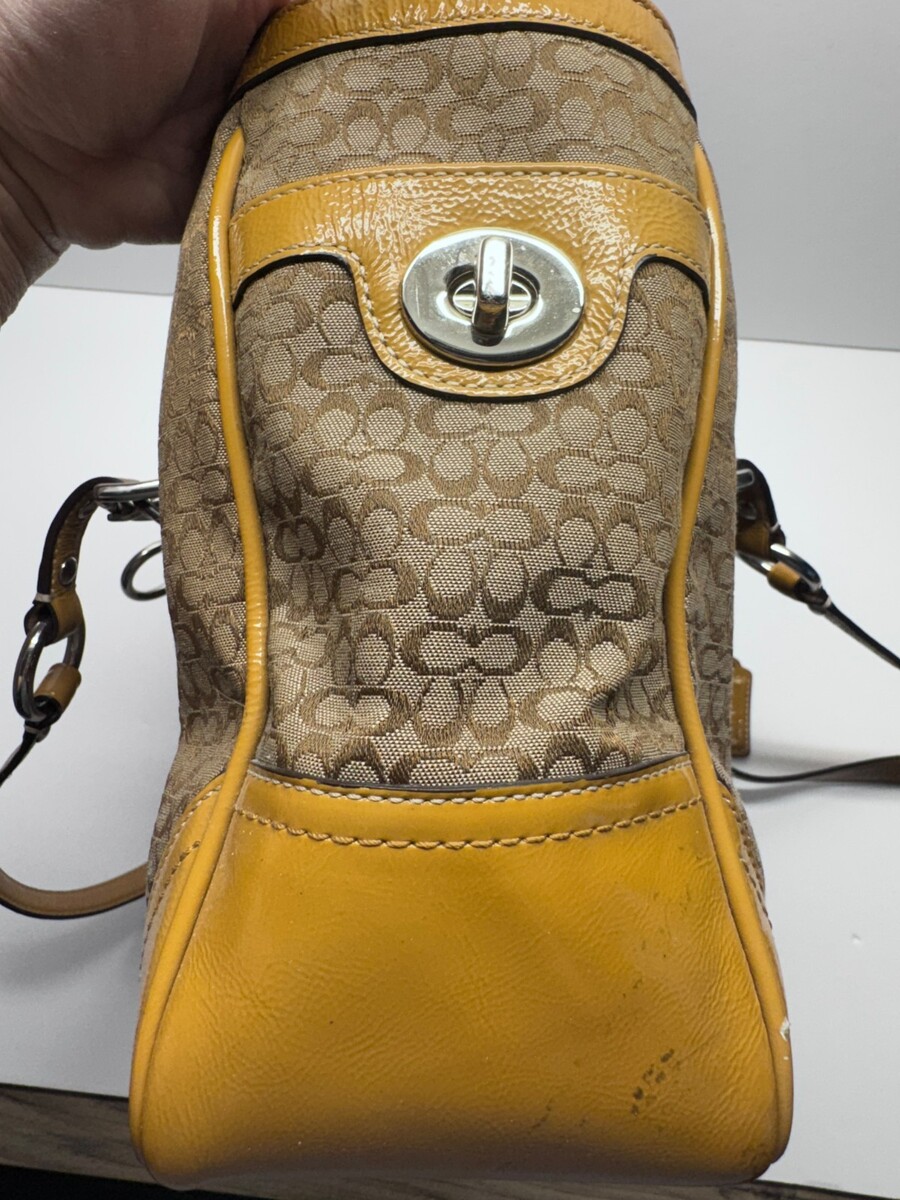 COACH SIGNATURE C HANDBAG Jacquard Tan Patent Leather F12346 Tote READ