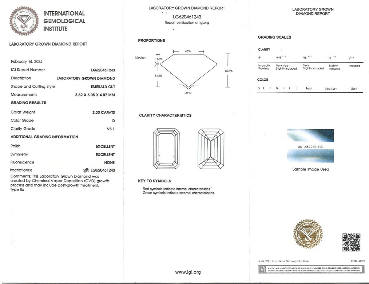 IGI 2Ct D-VS1 Emerald Cut Lab Grown Diamond and 43 similar items