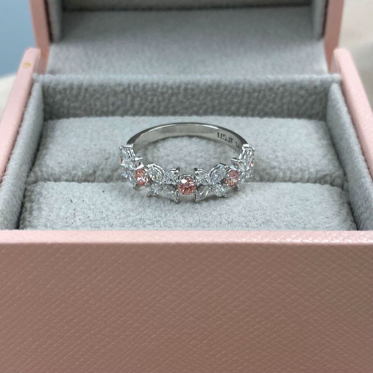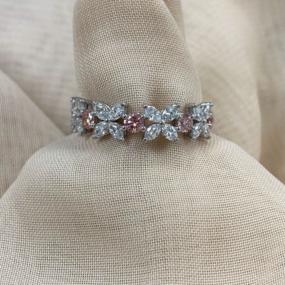 1.00 Ct Alternating Marquise Round Pink Lab Grown Diamond Wedding Band 14k Gold