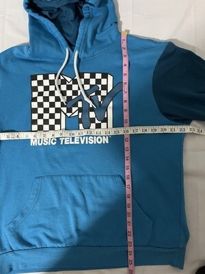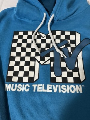 MTV Hoodie Pullover Kangaroo Pockets Spell Out Logo Casual Mens Large Blue