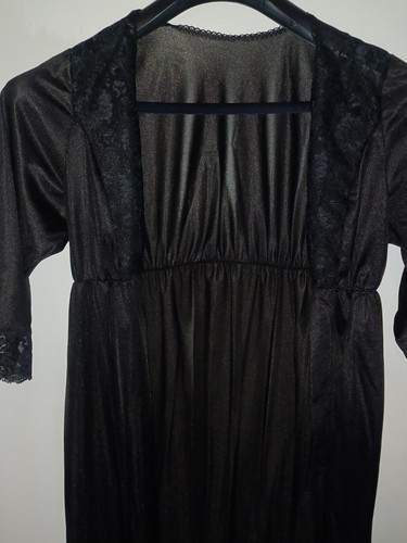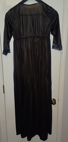 Vintage Union Made Black Lace Robe Cover Long Peignoir RN 17551