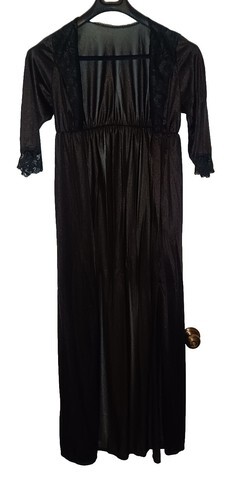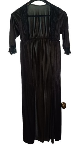 Vintage Union Made Black Lace Robe Cover Long Peignoir
