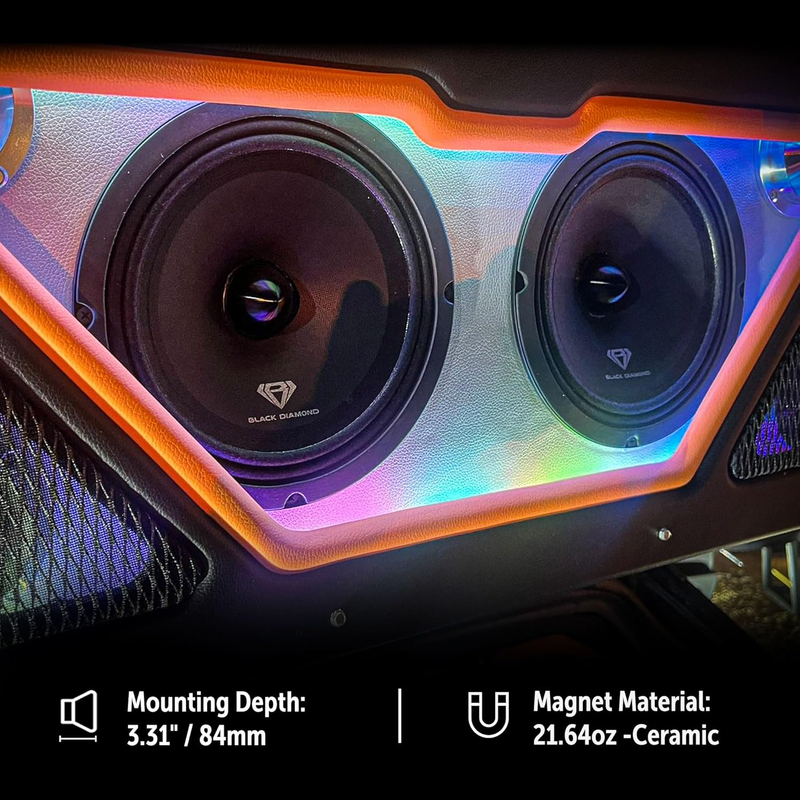Exclusive Black Diamond design. 14.4oz magnet with 1 inch high strength voice coil for high power applications.