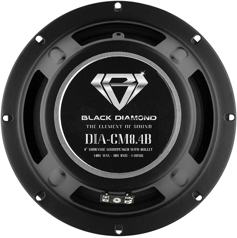 The Black Diamond series was designed to be the go to speaker for your high powered pro audio options. The DIA-CM8.4B is a great all around pro audio midrange speaker with a huge frequency range. Playing as low as 80hz and screaming all the way up to 10khz this speaker will be sure to hit all the spine tingling notes you want to emphasize.