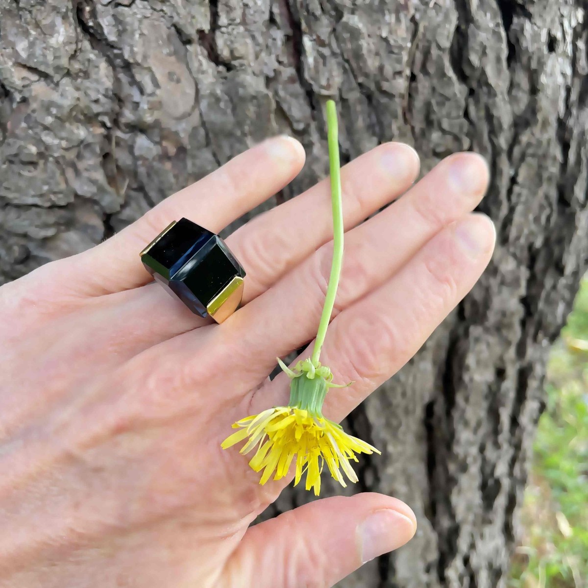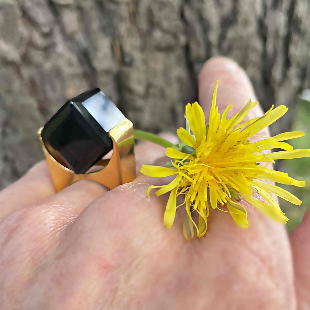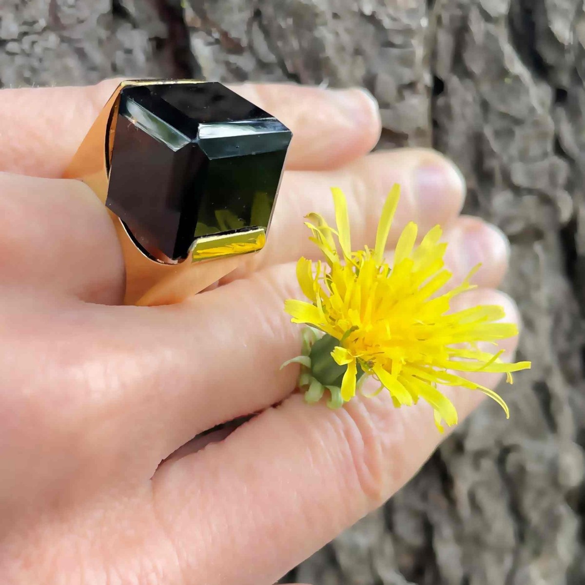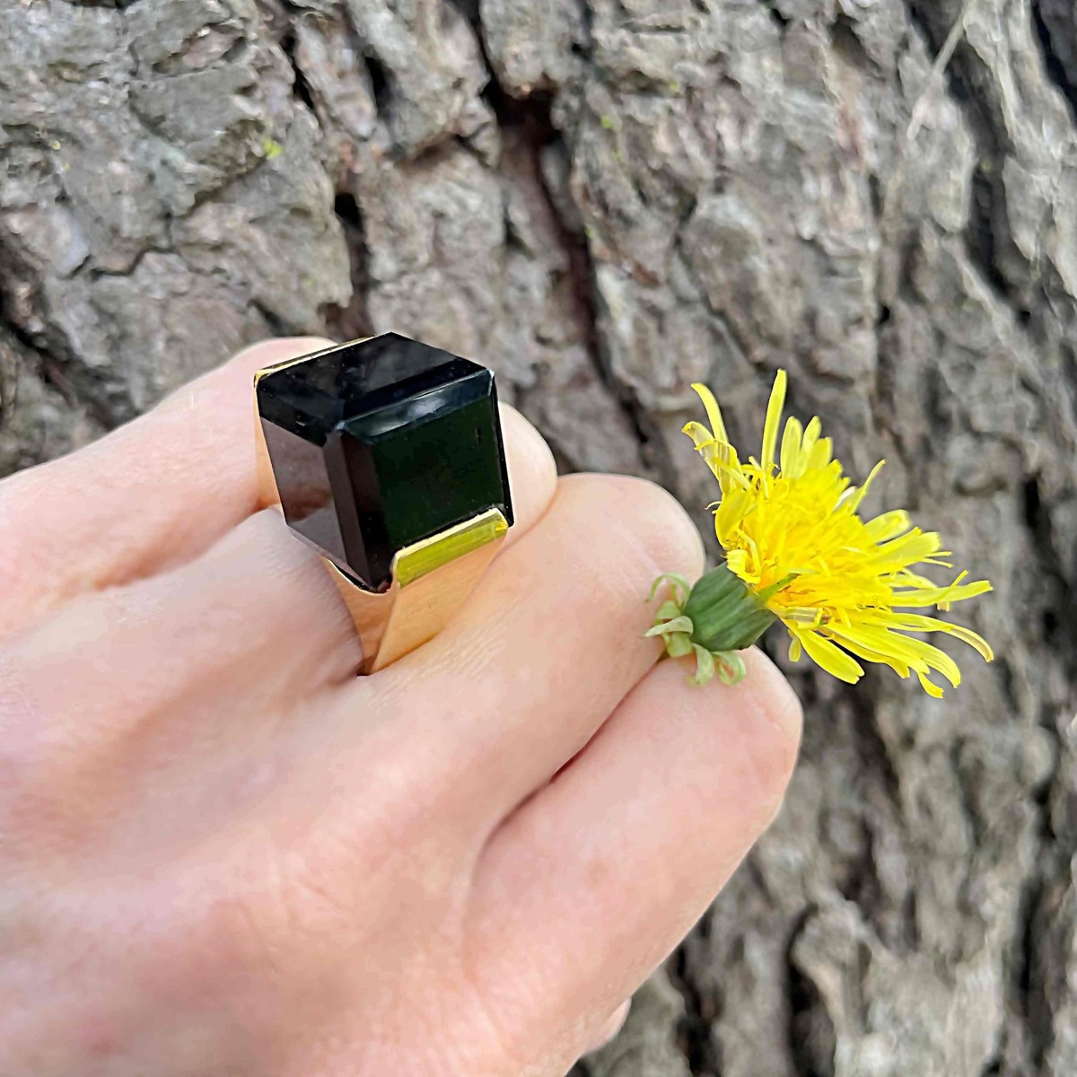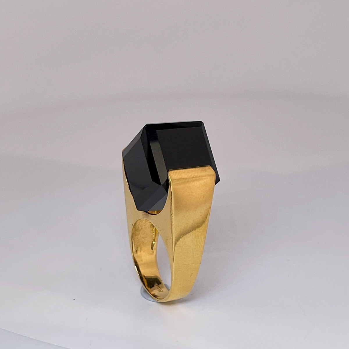 Here we have a seriously cool natural smoky quartz cube ring circa 1970 crafted in gold plated sterling silver.