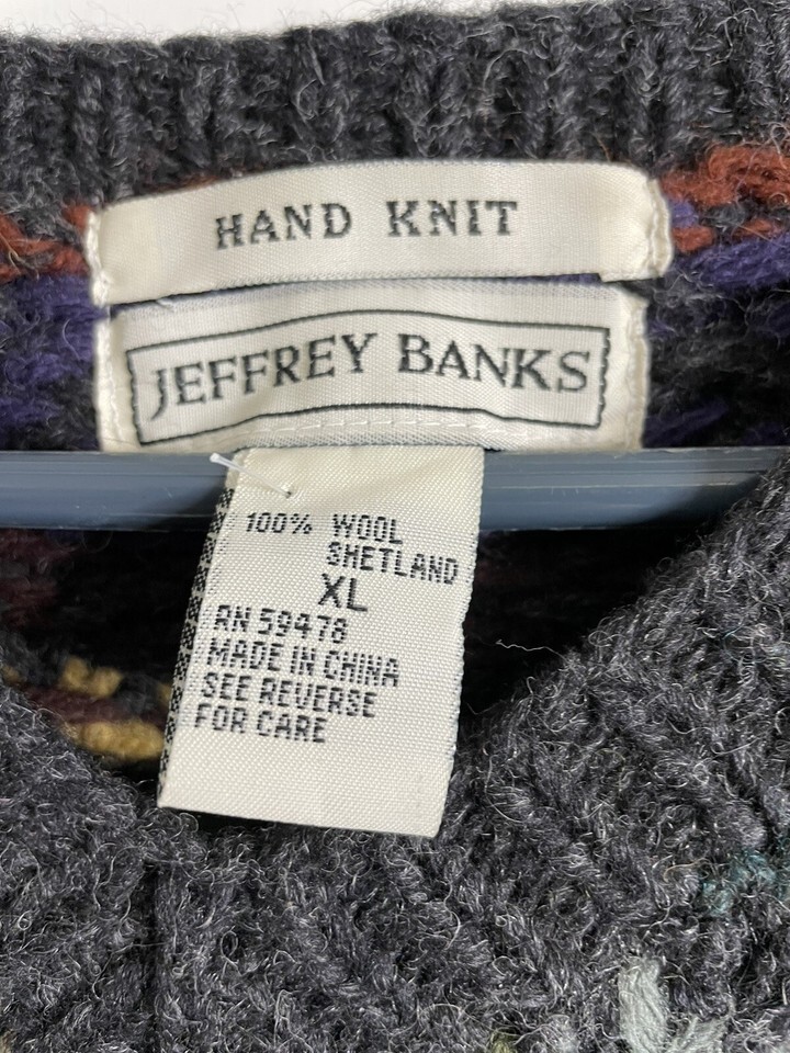 Jeffrey Banks Mens XL 100% Shetland Wool Hand Knitted Sweater