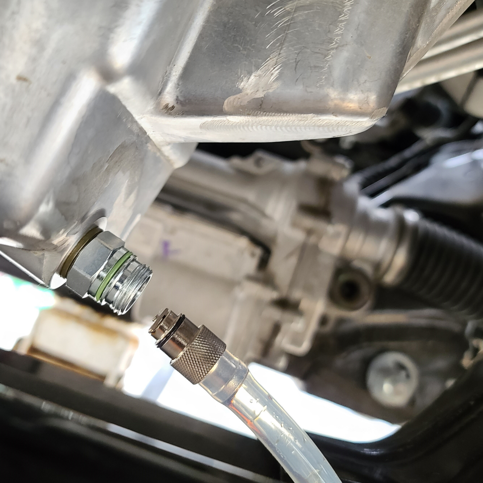 Once this is connected the valve opens and the oil starts flowing into the catch or bottle