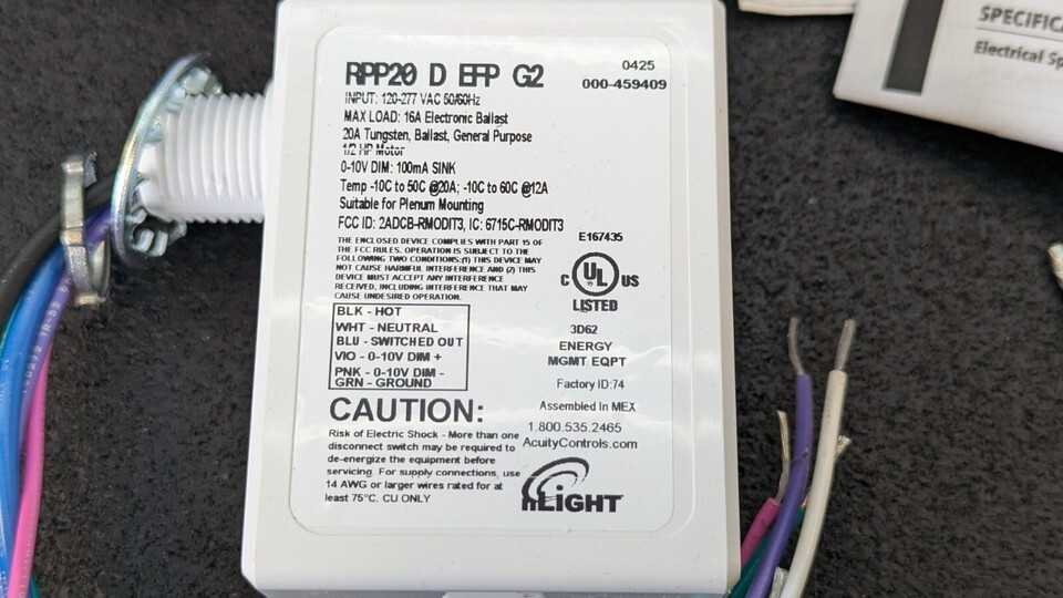 New Acuity Controls RPP20-D-EFP-G2 Occupancy Controlled Dimming - 2583HK