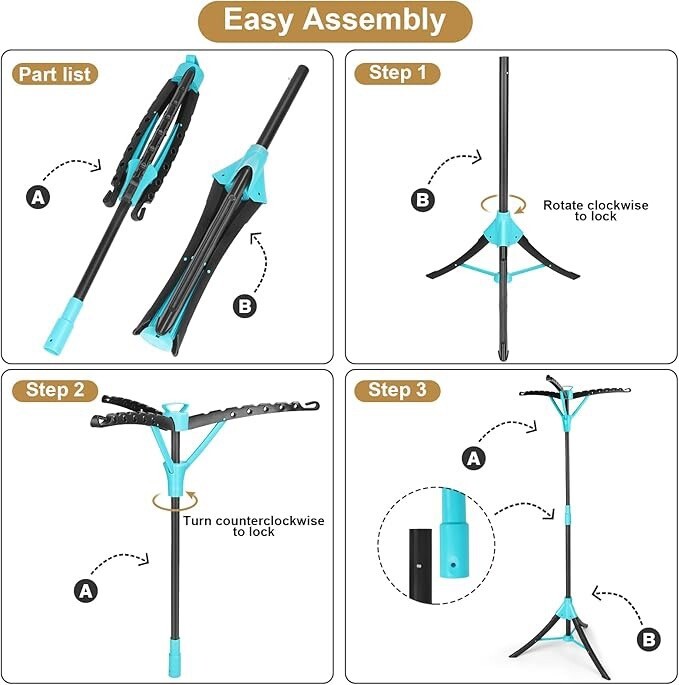 Durable and Stable: This laundry drying rack is made of powder coated lightweight and sturdy steel pipe and sturdy ABS plastics, durable and rustproof. And the tripod base design makes the clothing drying rack stably.