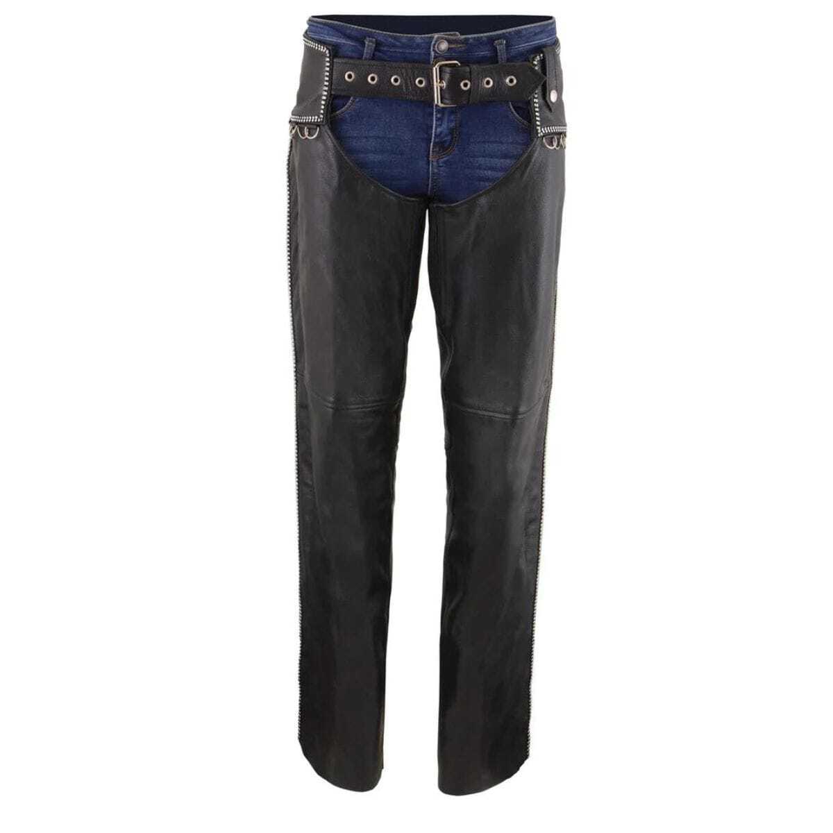 The Authentic Black Leather Chaps are designed for those who seek both style and functionality. Made from premium black leather, these chaps add an edgy, rugged look to your outfit while providing maximum comfort and protection. The adjustable belt ensures a customizable and secure fit, and the full-length zippers make them easy to wear and remove. Reinforced seams offer extra strength for long-lasting use, and the stylish rivet detailing adds a touch of uniqueness. Whether you’re heading to a music festival, biker rally, or just out for a ride, these chaps are the perfect addition to your wardrobe.