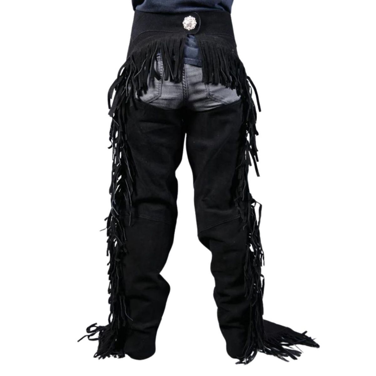 Elevate your Western style with the Ethan Black Western Chaps For Sale. Crafted from premium leather, these chaps ensure durability and a sleek, classic look. Perfect for riding or making a bold statement, they are an essential addition to any wardrobe. Featuring an adjustable waist for a perfect fit and reinforced stitching for extra durability, these chaps are designed to withstand rugged use. With multiple pockets for convenient storage and secure fastening for a snug fit, they combine functionality with distinctive design elements. Ideal for horseback riding, festivals, and everyday wear.