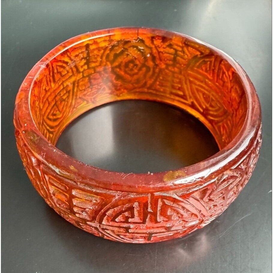 Vintage Hand Carved Lucite Bangle Bracelet and similar items