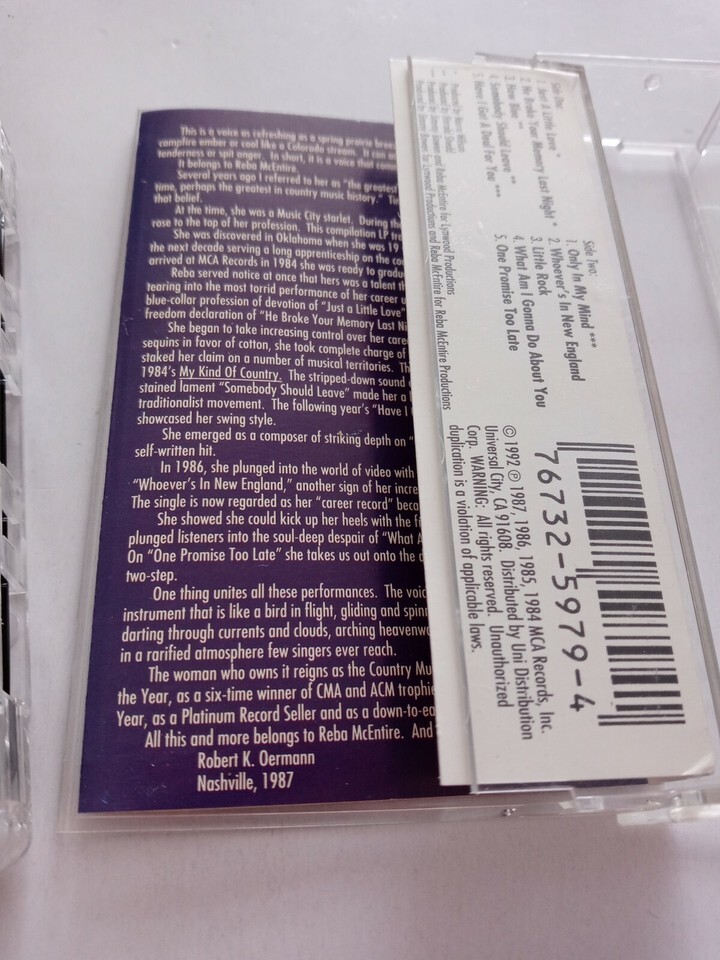 Reba McEntire's Greatest Hits (Cassette, 1992 MCA Records) RARE VERY GOOD