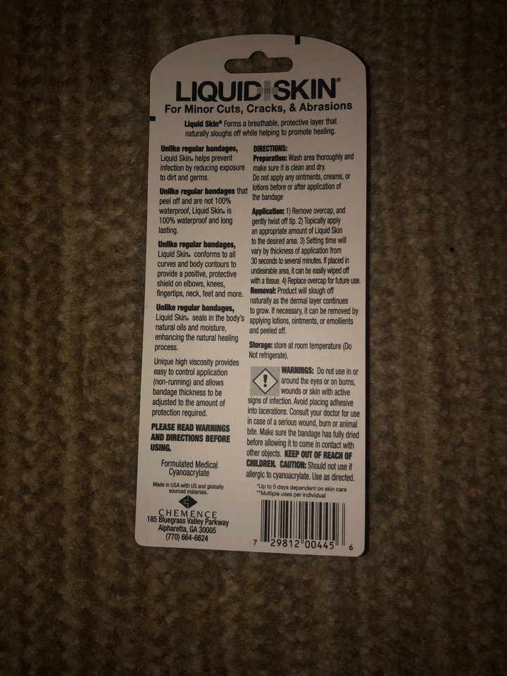 Liquid Skin-The Better Bandage for Minor Cuts, Cracks Abrasions . Condition is New. Shipped with USPS First Class Package.