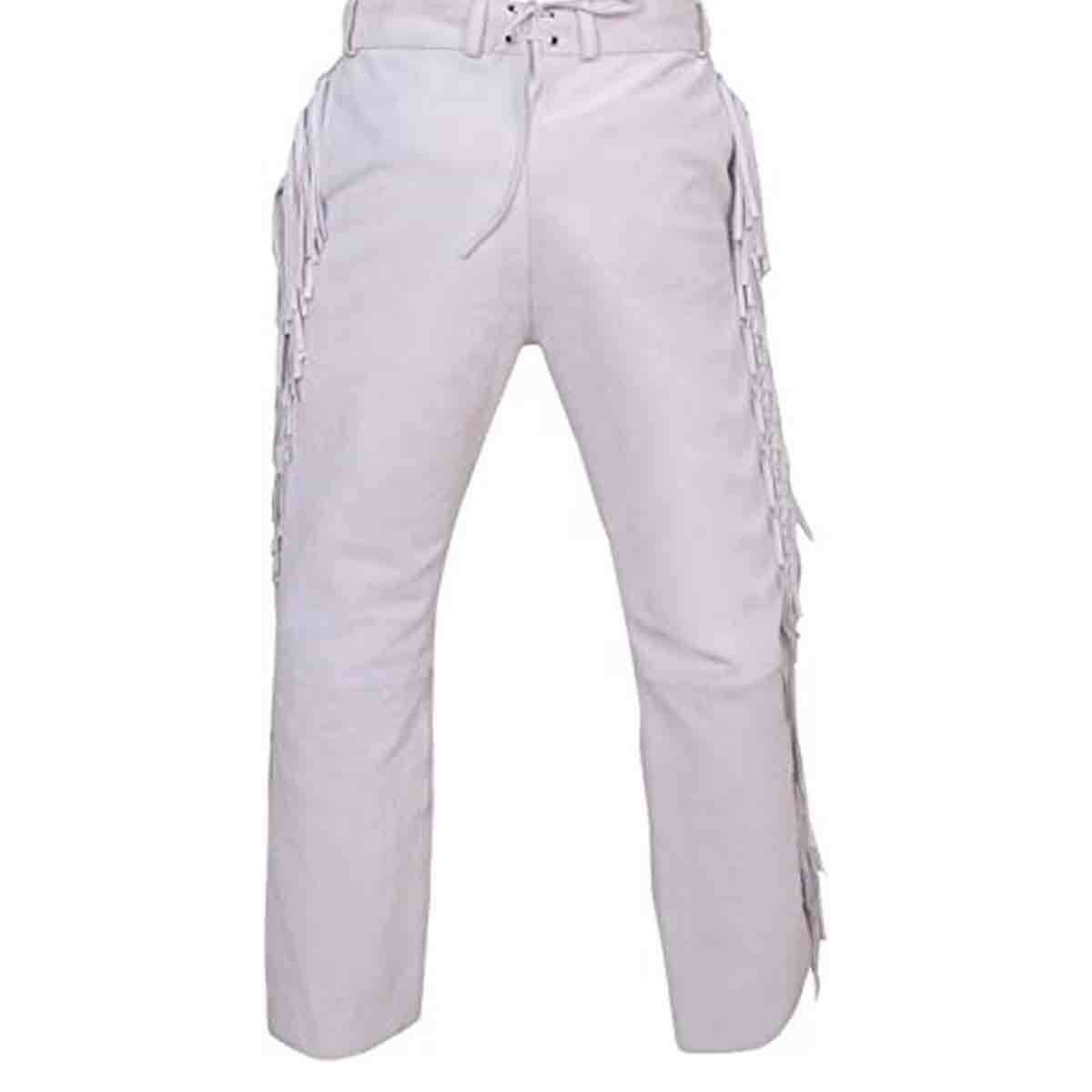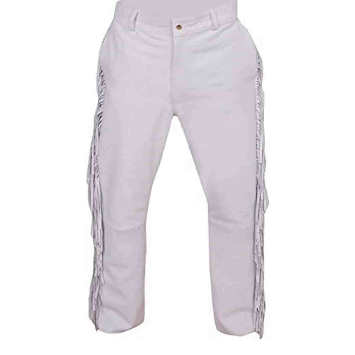 White Men’s Suede Leather Pant a blend of timeless style and modern fashion. These pants are designed for those who seek elegance and durability in their wardrobe. Crafted from high-quality suede, they are perfect for making a bold statement at any event. The soft, luxurious feel of the suede ensures maximum comfort, while the unique fringe detailing adds a touch of Western flair. The tailored fit creates a sleek and sophisticated silhouette, enhanced by the lace-up back for a custom fit. With durable construction, these pants are made to last, offering both style and functionality for any occasion.