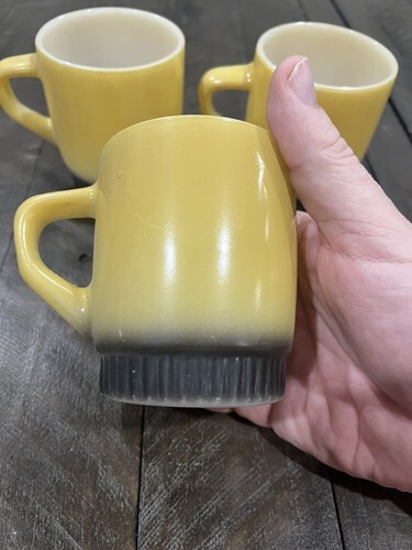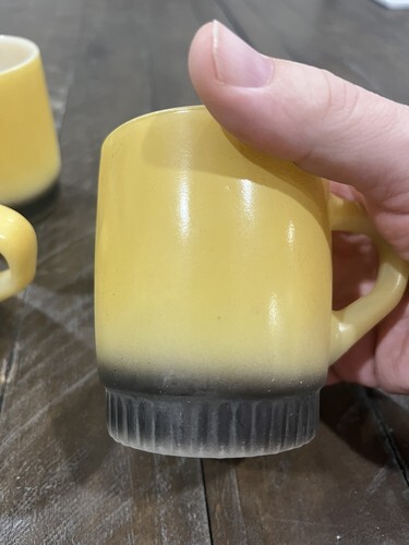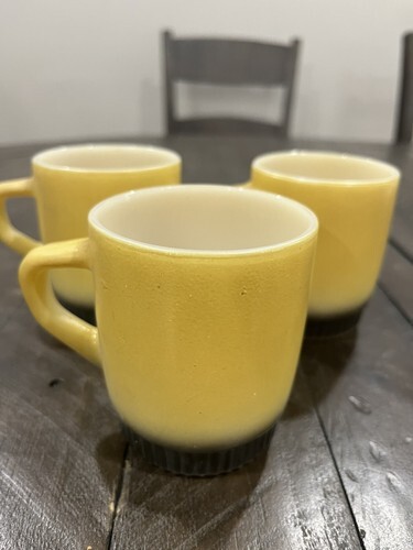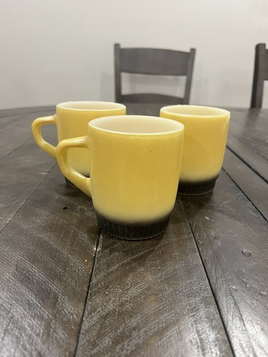 Vtg Anchor Hocking Fire King Yellow Brown Coffee Cup Mug Ribbed Stackable (3)