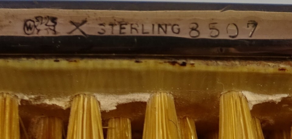 Vintage King Albert by Whiting sterling silver clothes brush. The piece has a scrolly monogram (see photo), and it's marked with #8507X. It measures 7 1/4" x 2 1/4" and is in excellent condition.