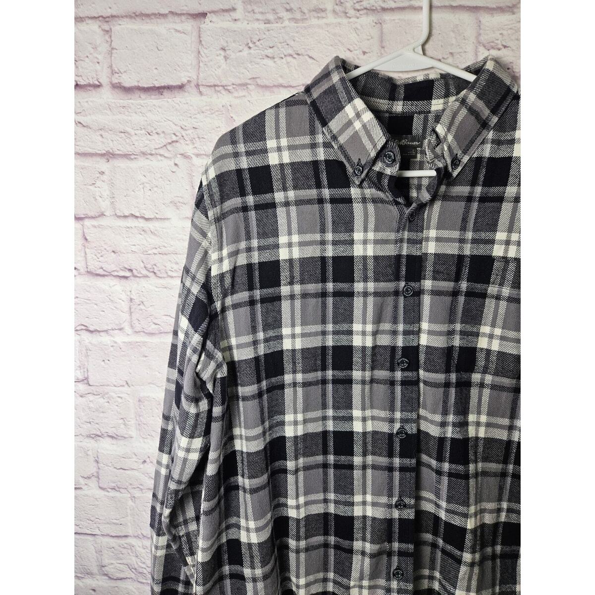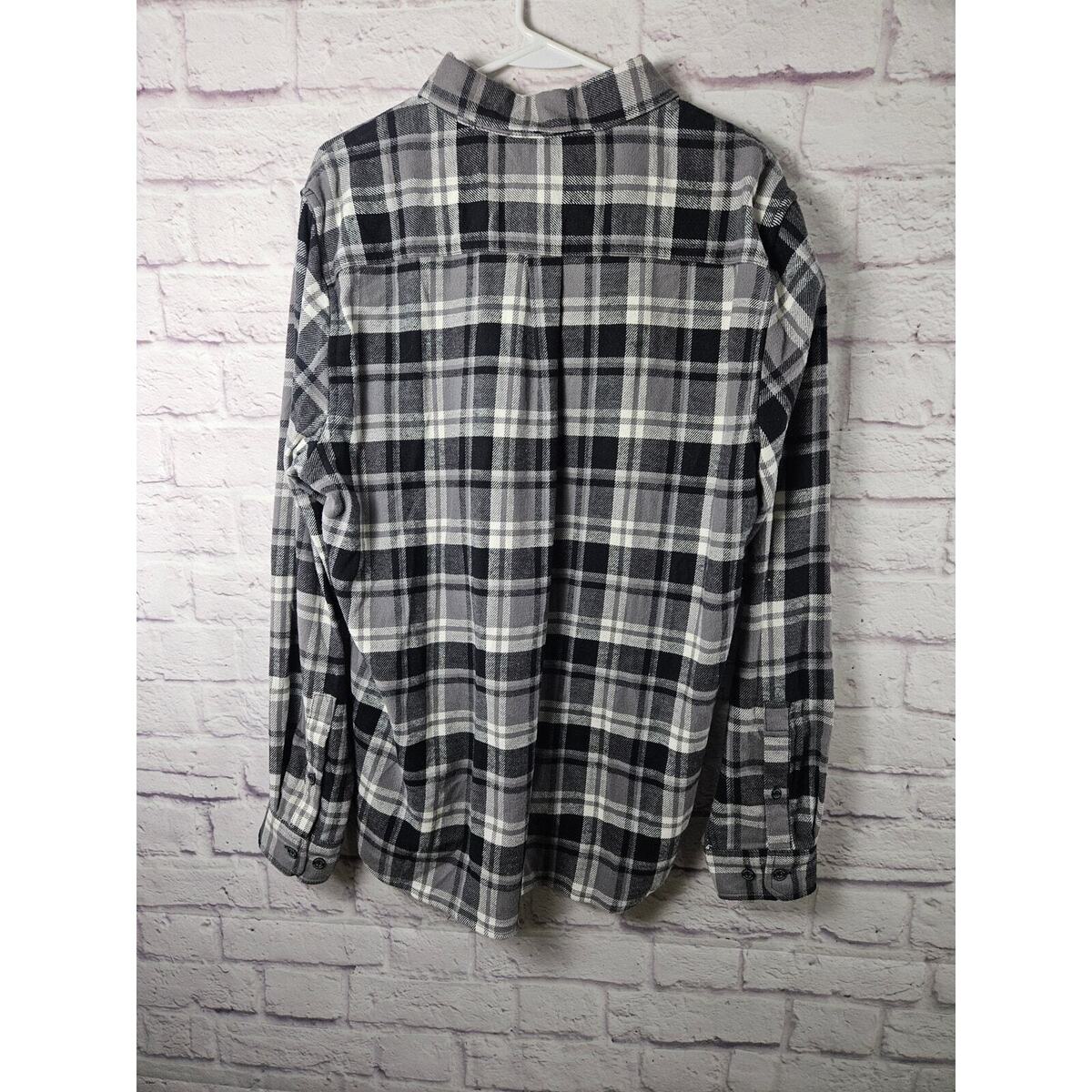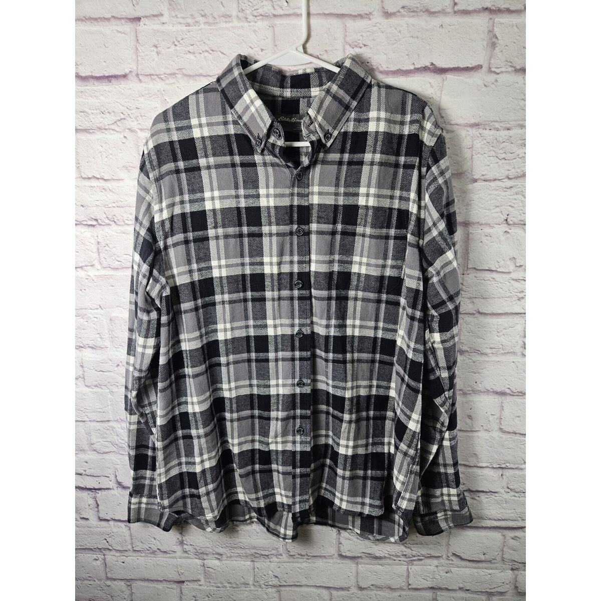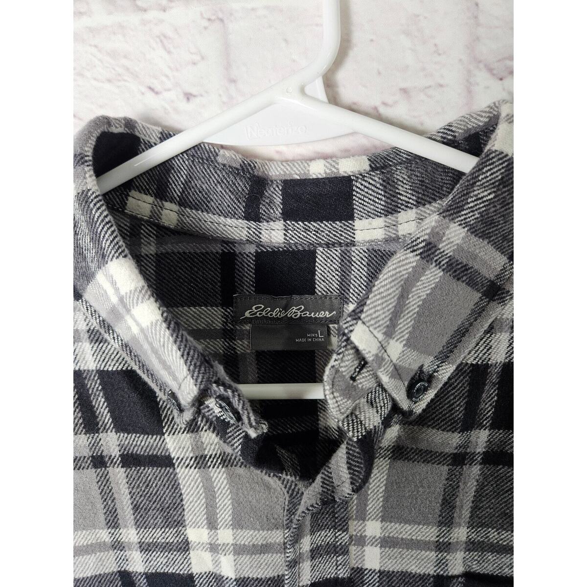 Eddie Bauer Men's Cotton Flannel Long Sleeve Black White Plaid Size Large