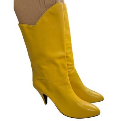 80s Vintage Boots Country Market Yellow Leather Dress Heels Sz 8.5 Slightly Slouchy-