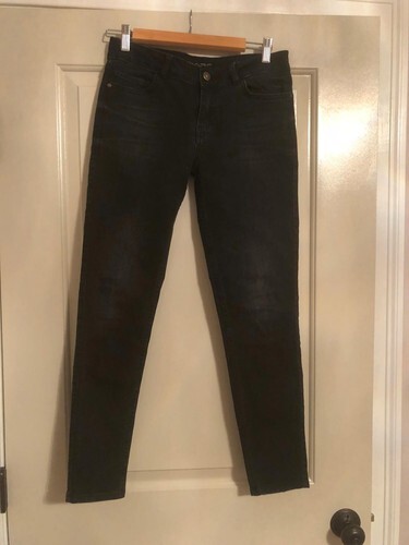 These pre-owned ZARA basic denim dept. skinny black jeans are in very good pre-owned condition with no signs of damage of any kind. They feature: