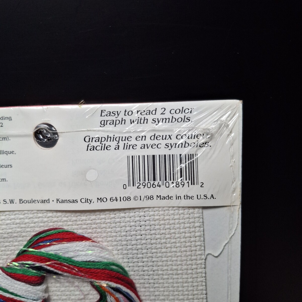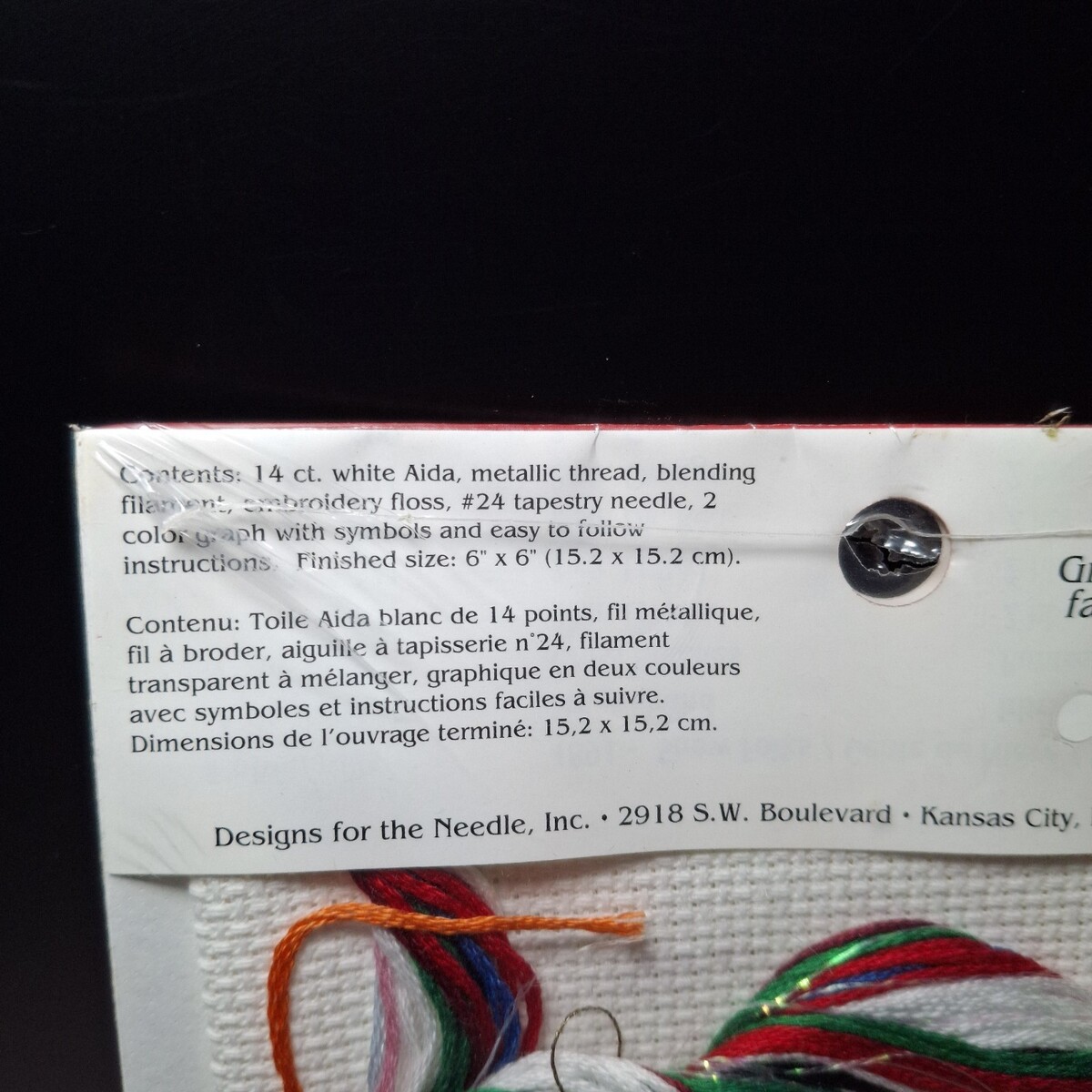 Kit contains 14 ct Aida, metallic thread, blending filament, #24 tapestry needle, 2 color graph with symbols instructions.