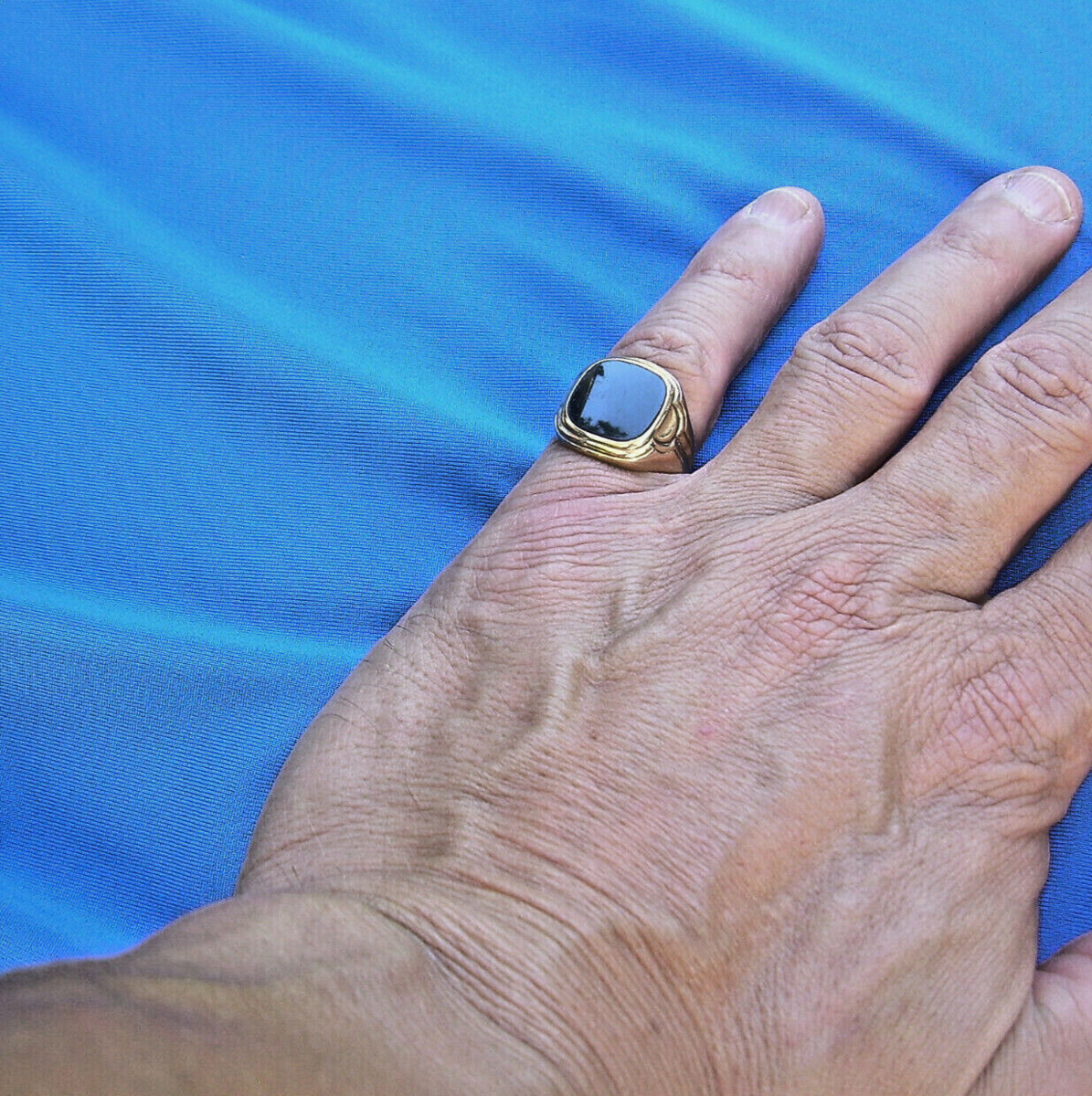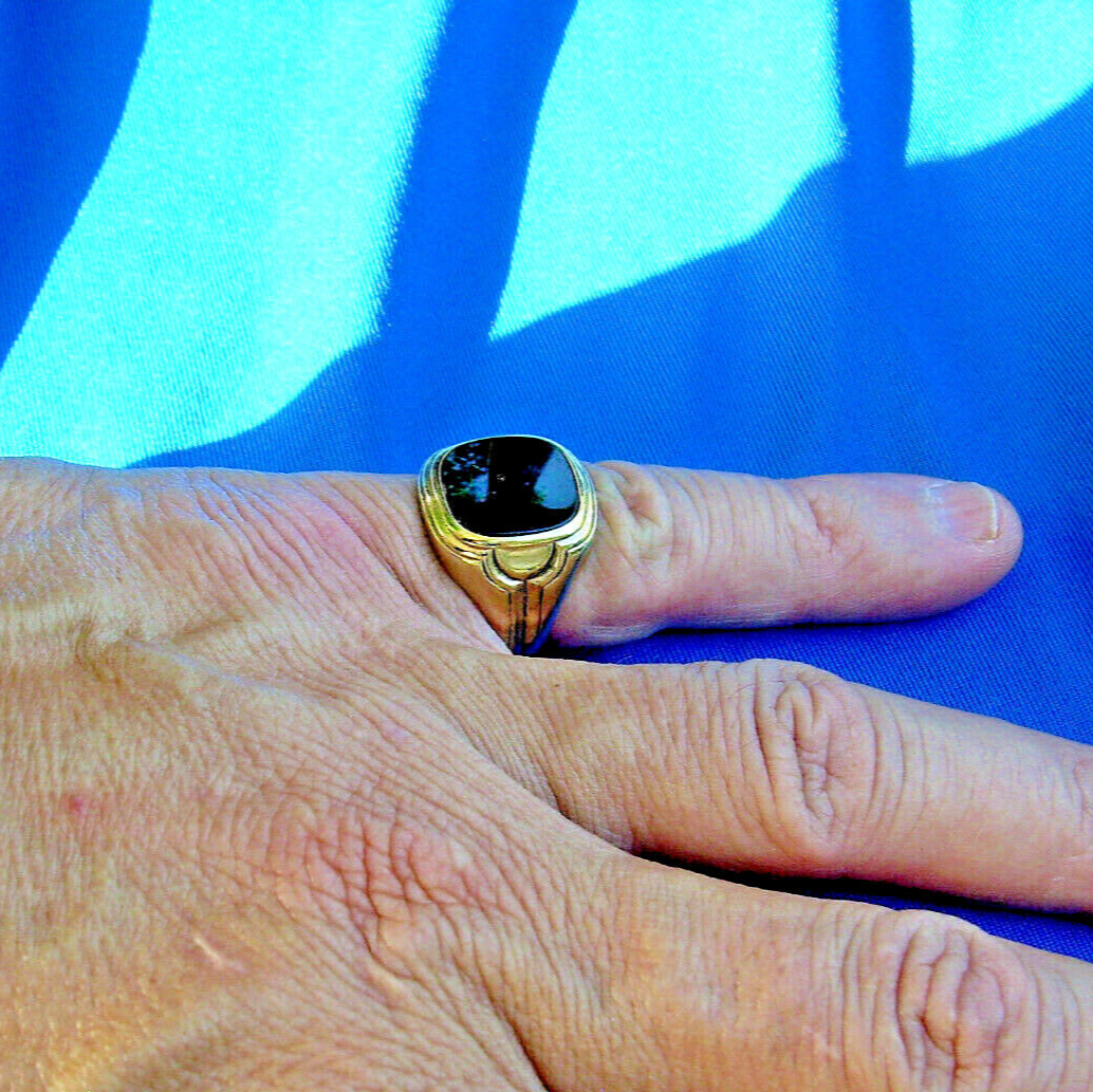 Amazing Deco Geometric Onyx Signet Statement Ring Vintage Solid 10k Gold Mens