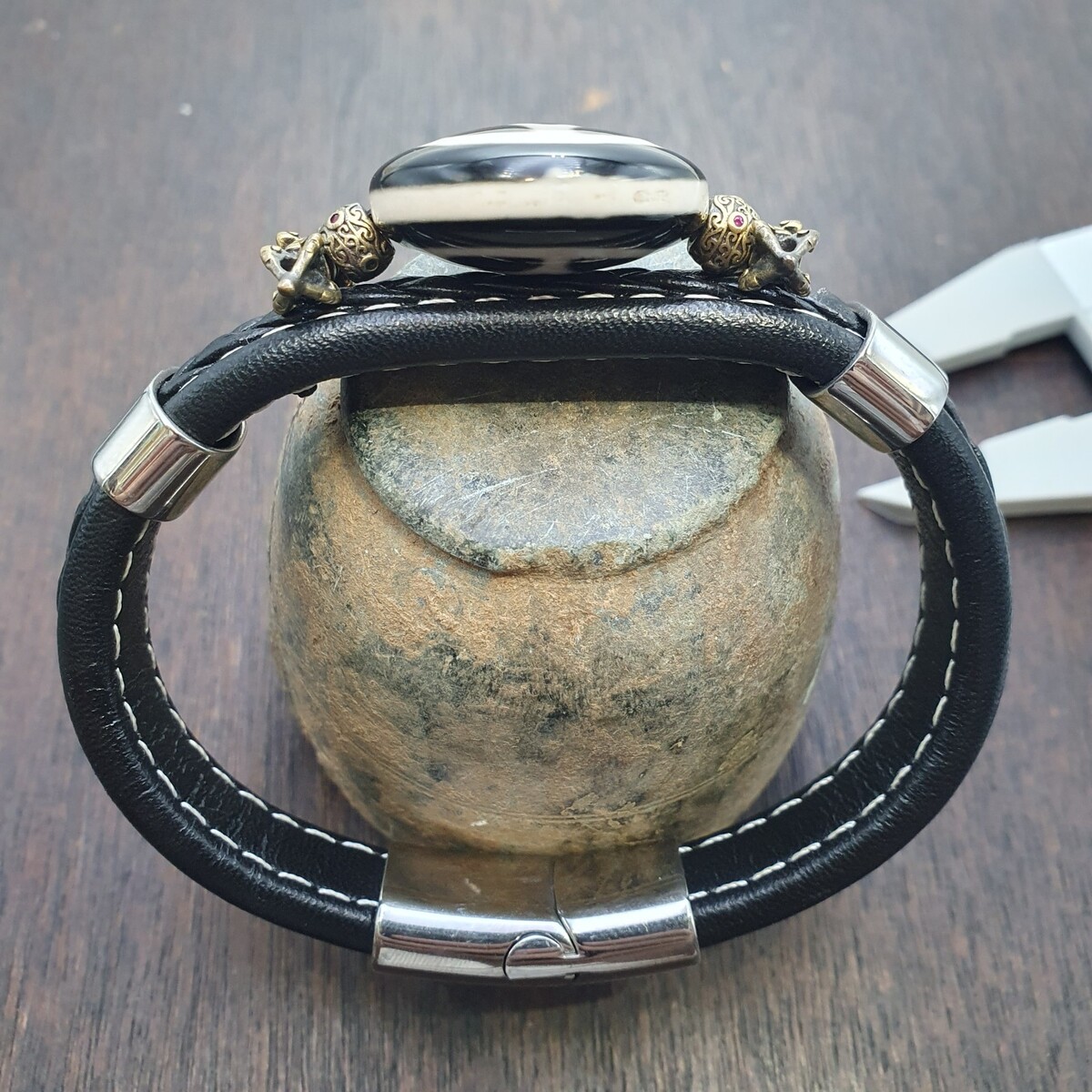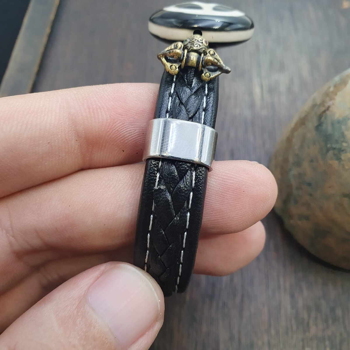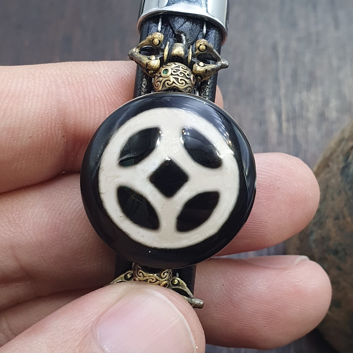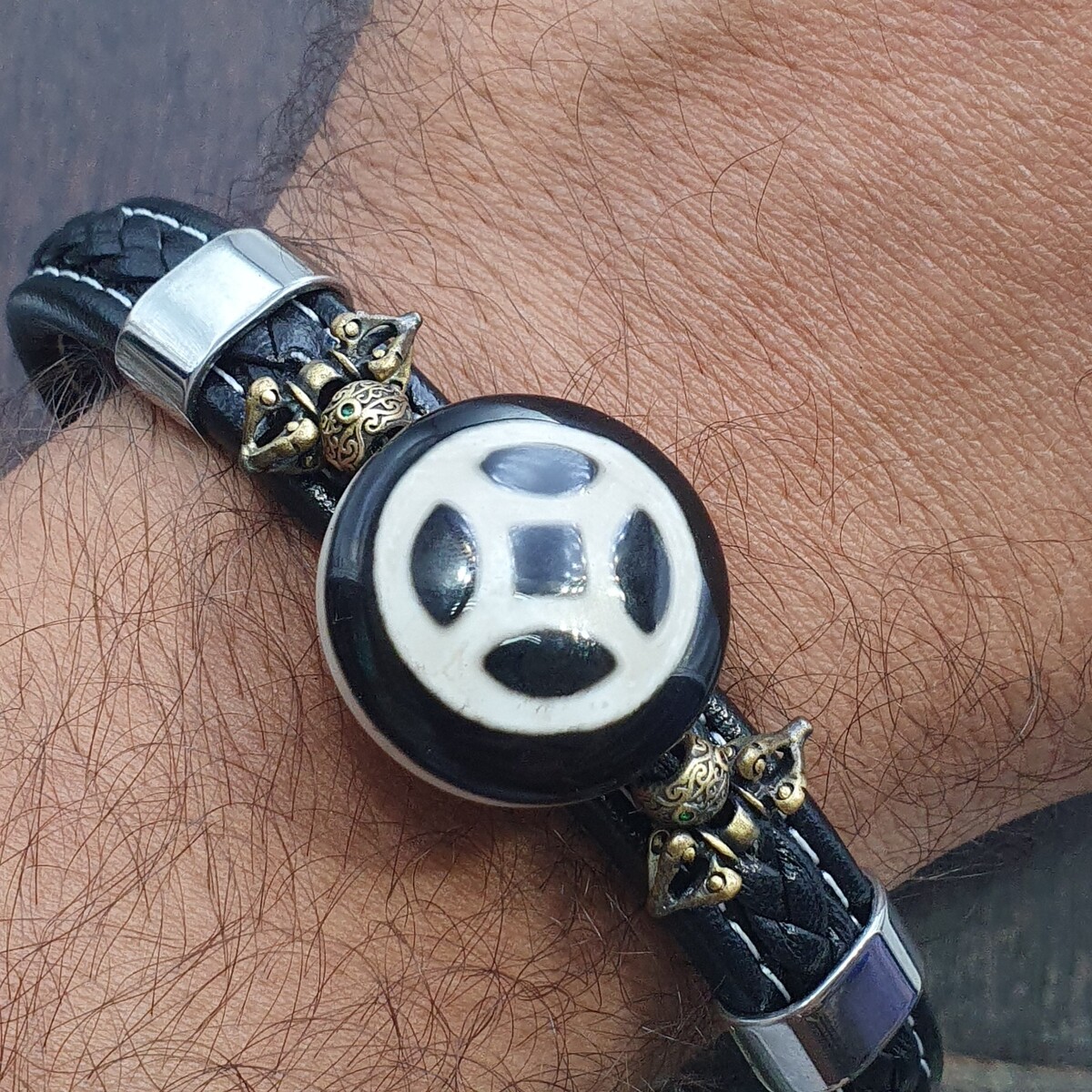 Handcrafted bracelet cross wheel motif Tibetan Dzi Bead PU Leather Bracelet