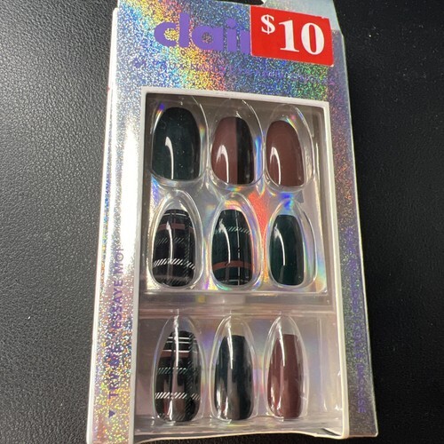 24pc Claire's Fake Press On Nails Glue On Vegan Plaid Print Green Brwn Blk White.