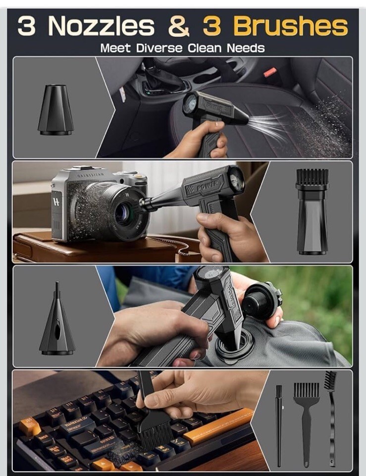 The Cooldove 300,000 RPM Air Duster is a brushless motor with four speeds, providing extreme high power for efficient cleaning. With a working time of 10-100 minutes and a charging time of 2.5-3 hours, this air duster is perfect for use on computer keyboards, car cleaning, and outdoor maintenance. Its cost-effective and reusable design makes it a convenient and reliable choice for keeping your electronics and surroundings clean.