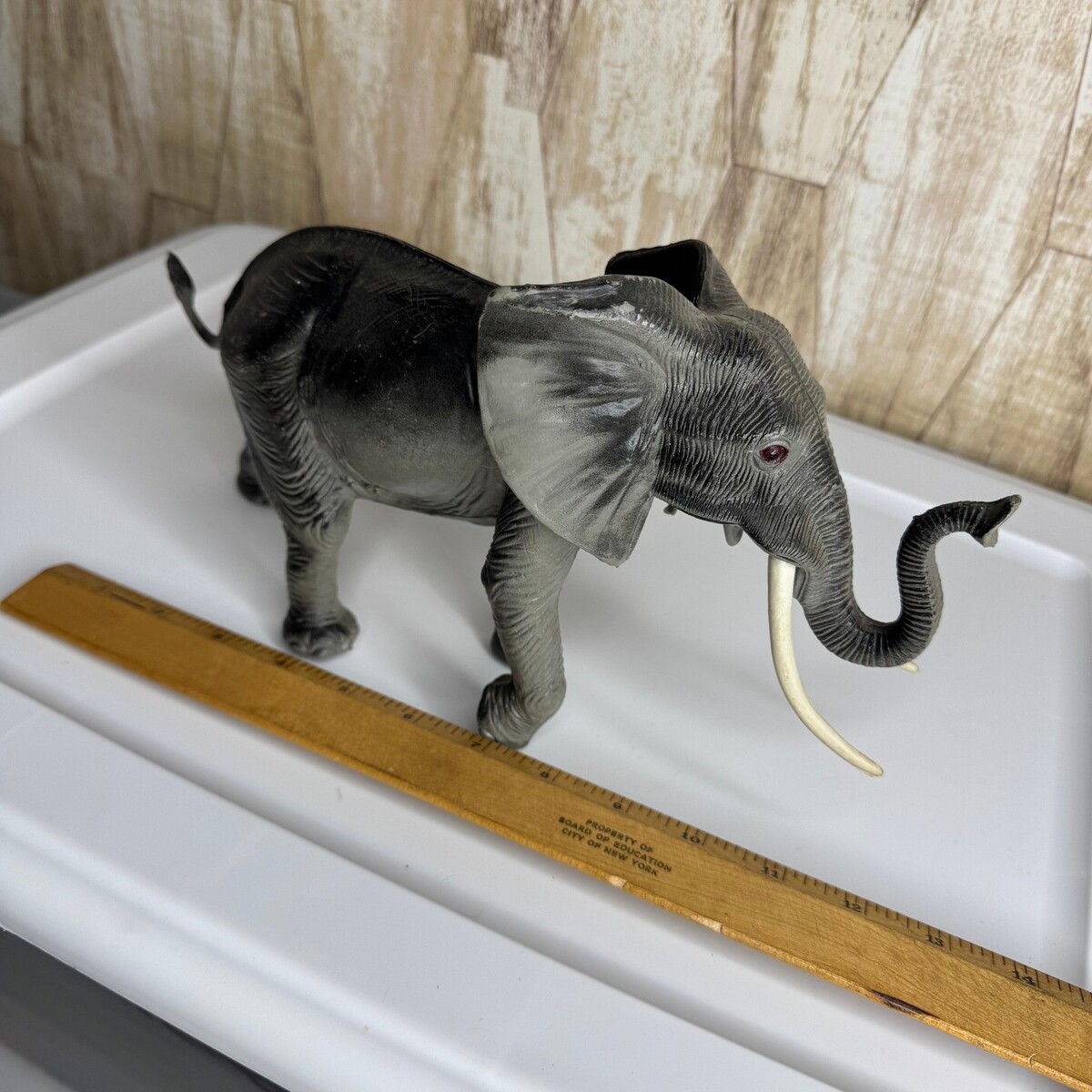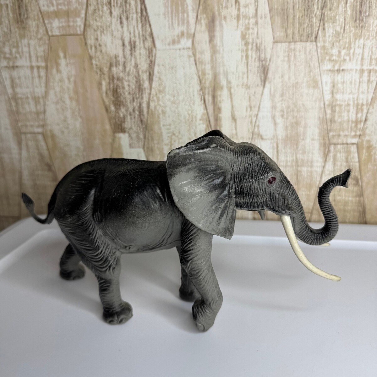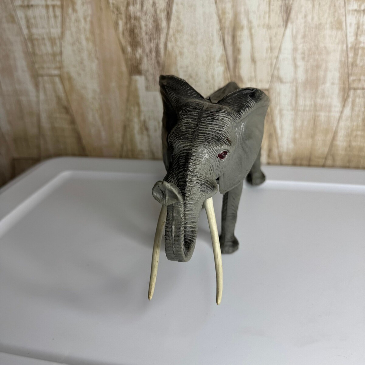 Keywords: elephant figurine, toy animal, safari theme, jungle animal, plastic toy, collectible, desk decor, kids toy, animal figure, realistic, gray elephant, vintage toy