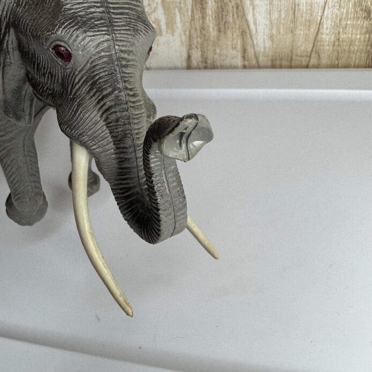 Vintage PVC Elephant Figurine Toy Safari Animal Gray Tusks Realistic Detail