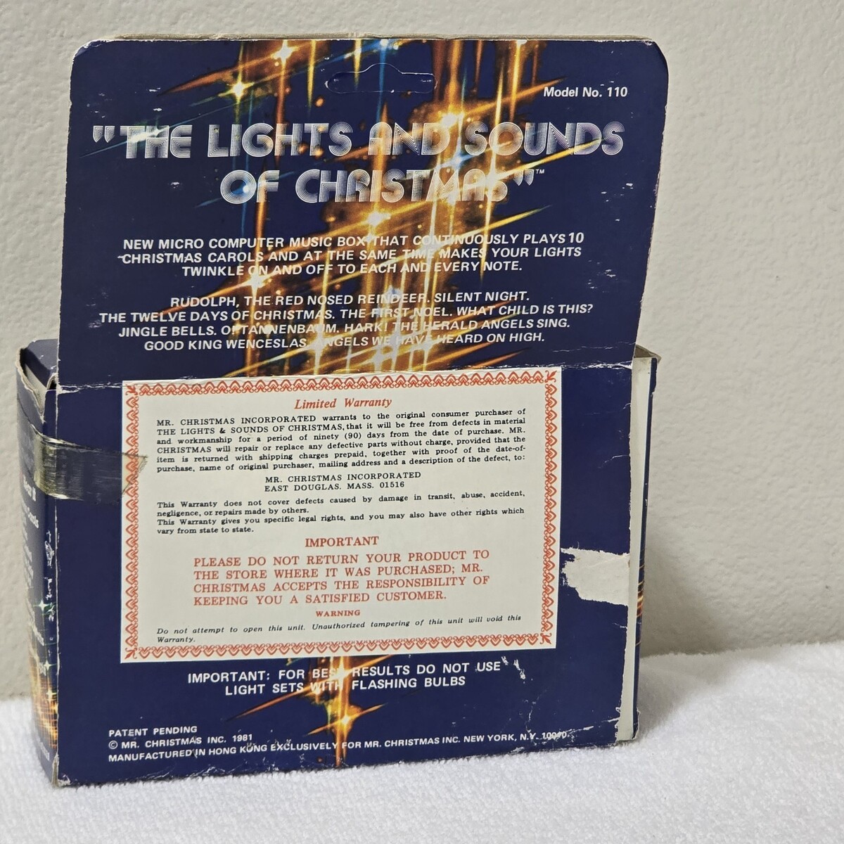 Excellent Condition Vintage 1981 Mr Christmas Model 110 The Lights And Sounds Of Christmas Music Box - Comes with the original box.