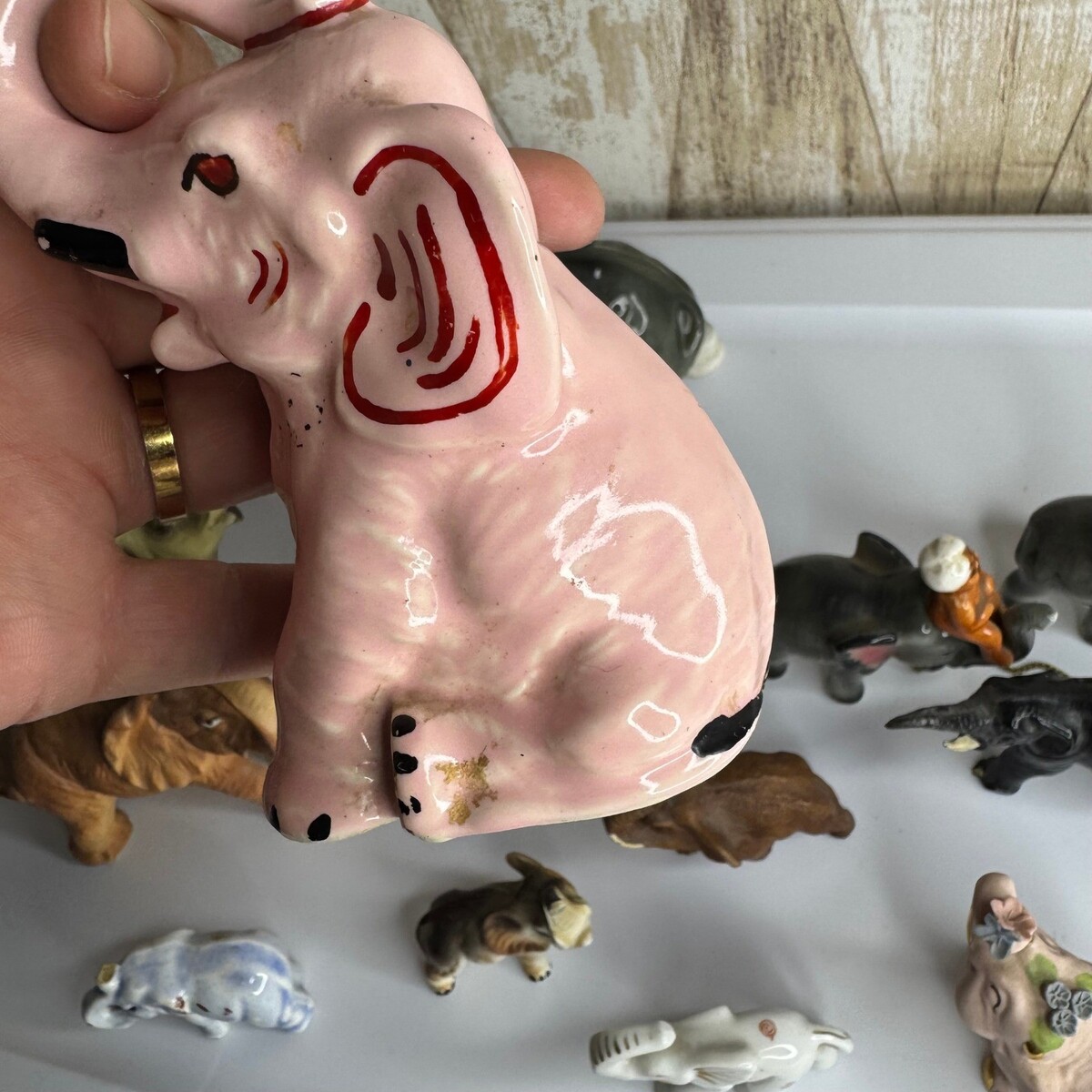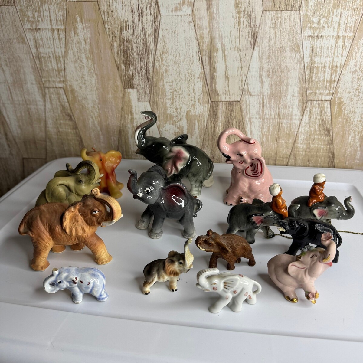 Lot of 14 Ceramic Elephants Figurines LOT VINTAGE MID CENTURY MCM
