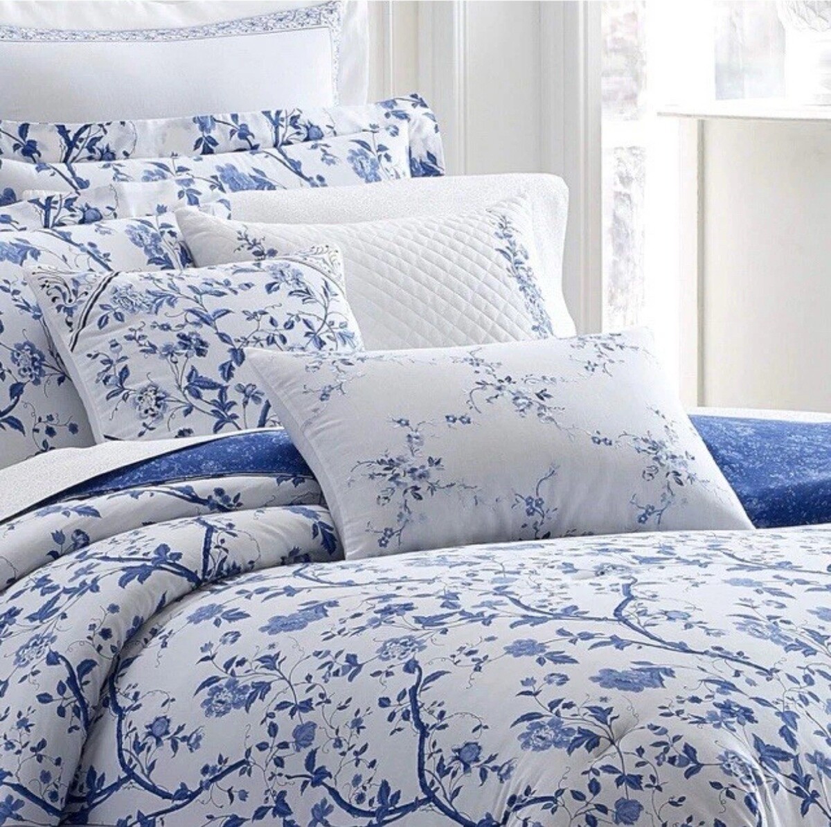 Laura Ashley Charlotte 2pc Standard Pillow Shams White China Blue Floral BNWOT