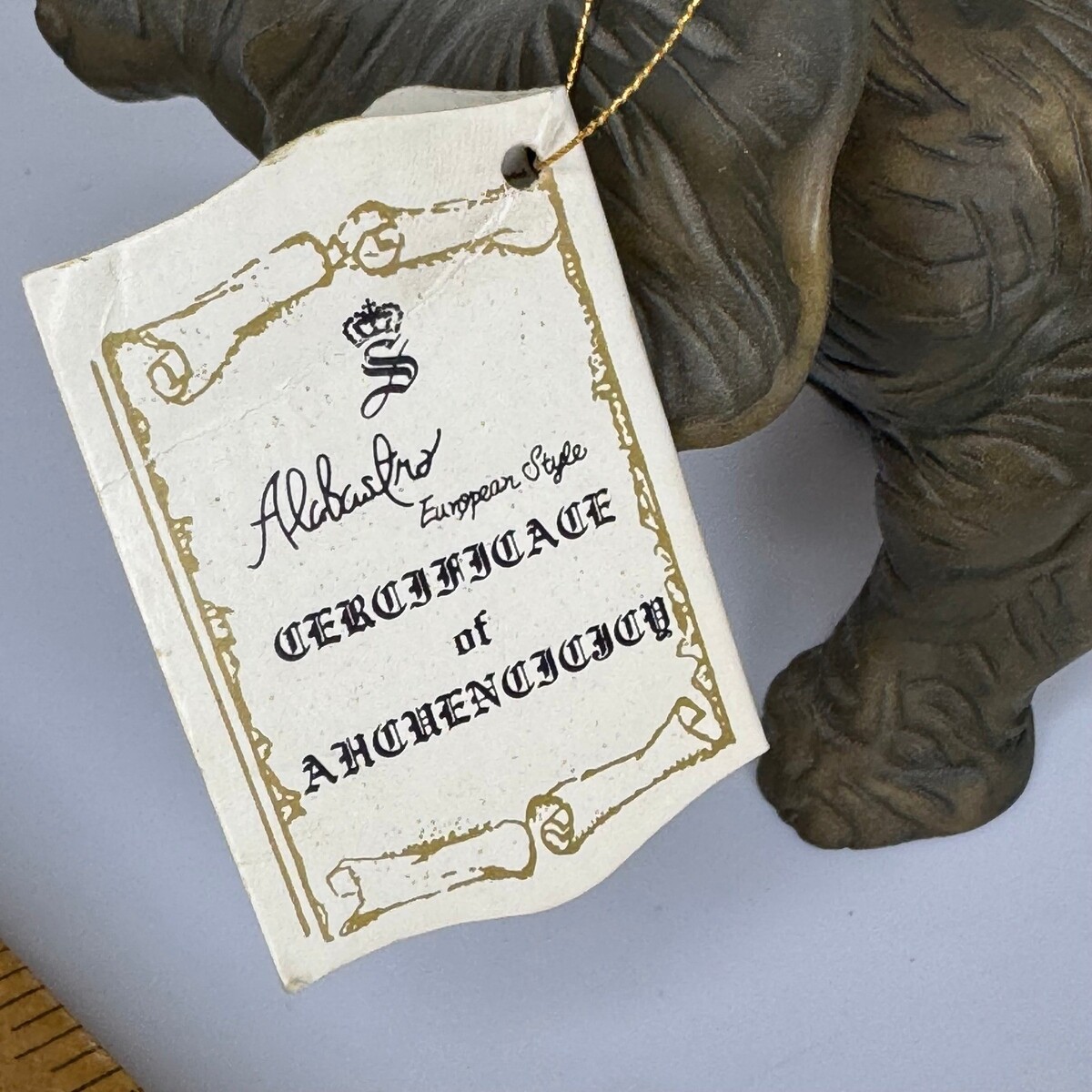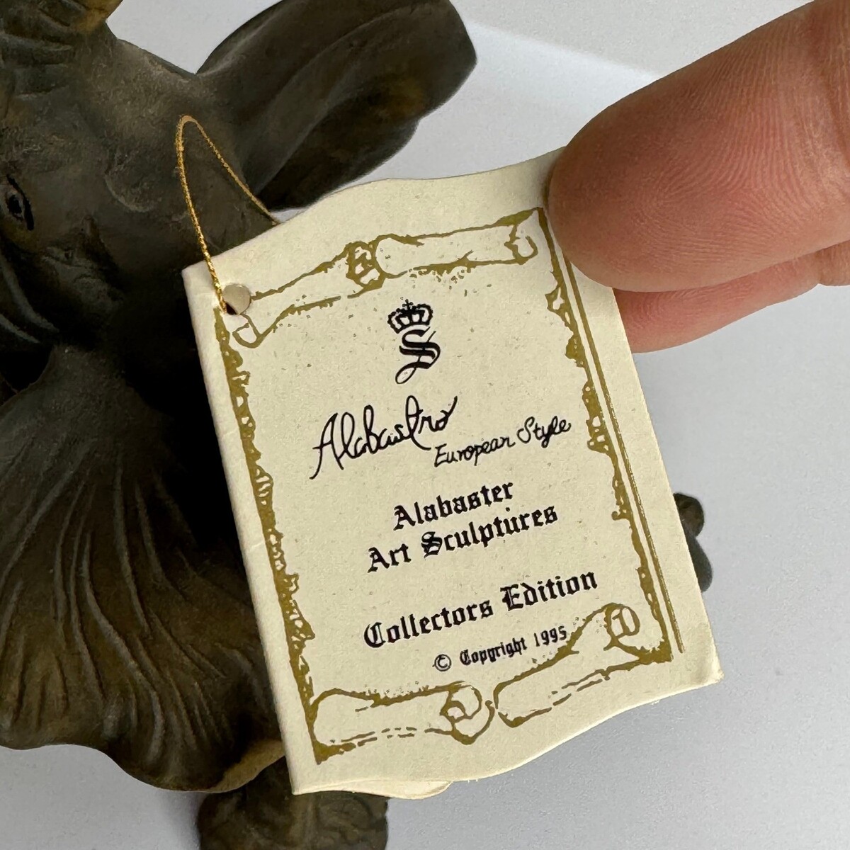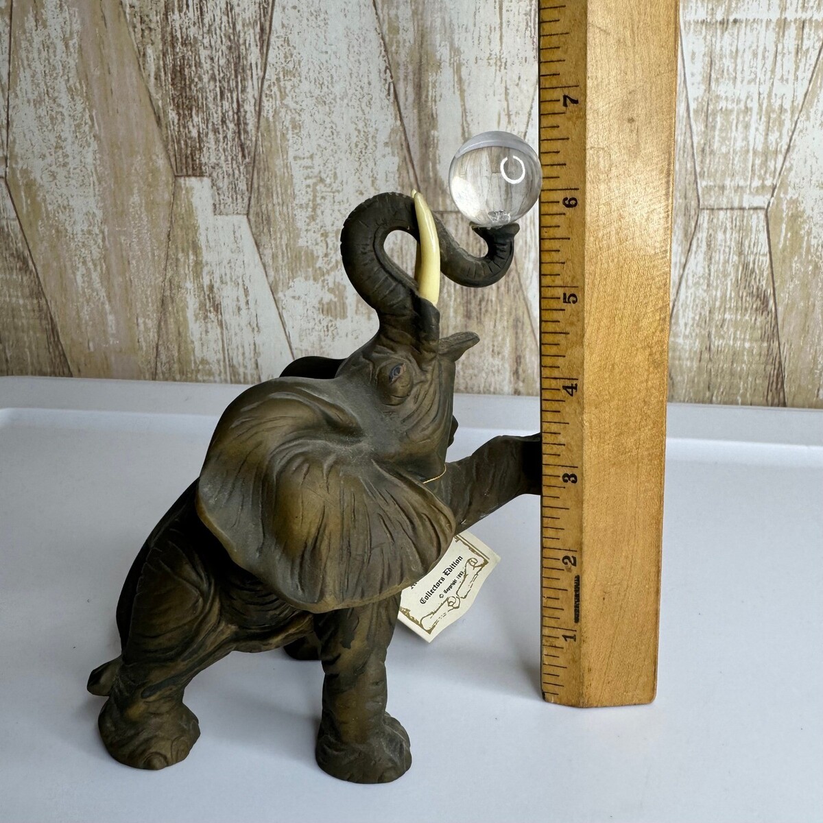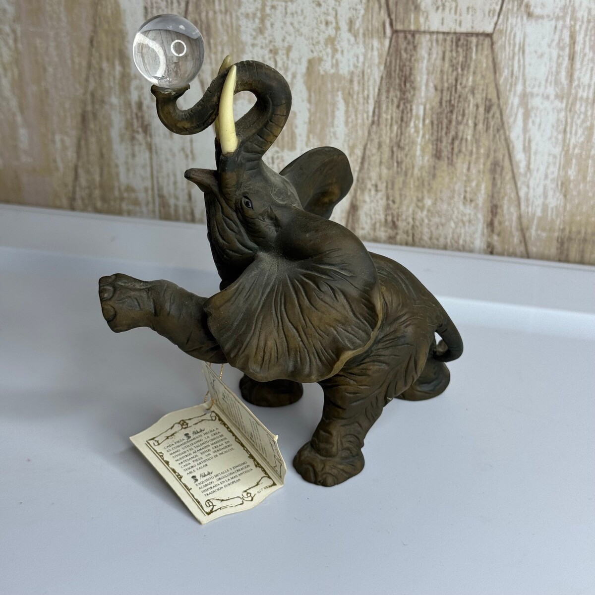 Keywords: Alabastro Sculpture, Elephant Figurine, Collectors Edition, Art Sculpture, European Style, Crystal Ball Accent, Home Accent, Tabletop Decor, Gift Idea, Vintage Style, Trunk Up Elephant, Handcrafted, Desk Decor