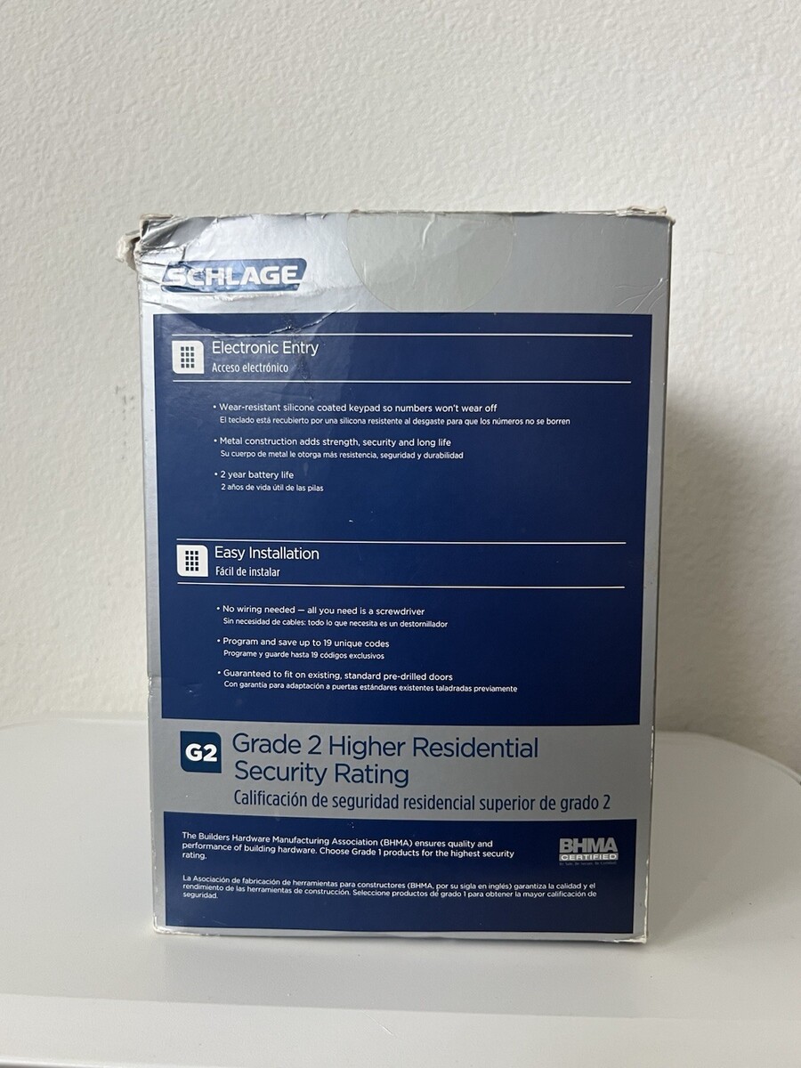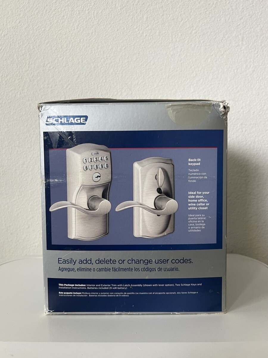 SCHLAGE FE595 V CAM 619 ACC Camelot Keypad Entry Satin Nickel - New