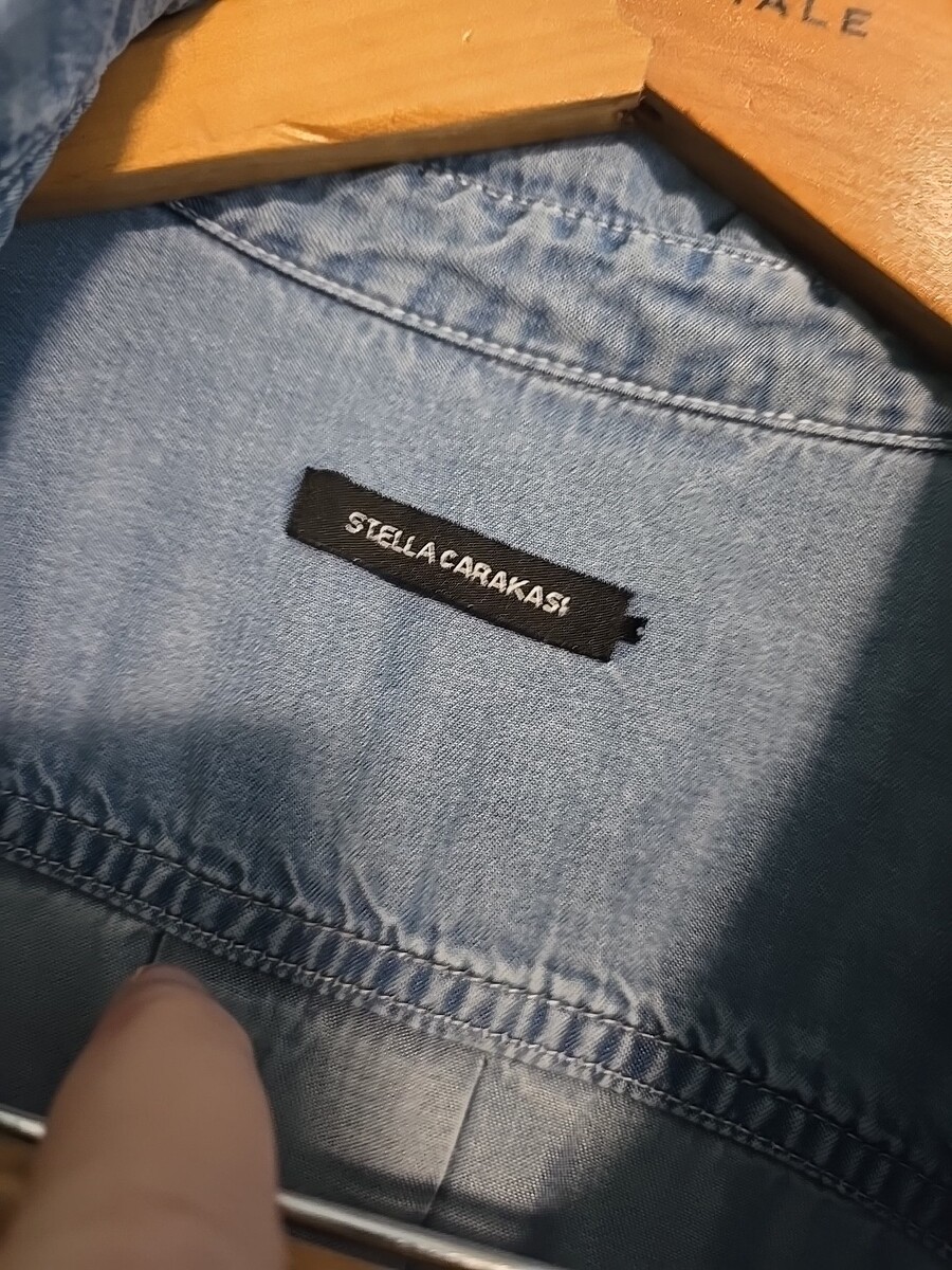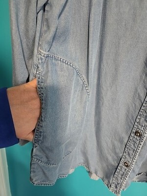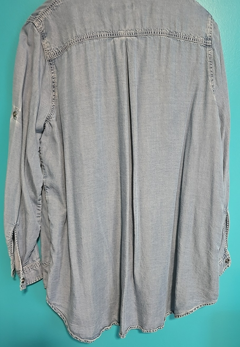 Stella Carakasi Large? Washed Denim Tunic Shirt Button Front Lightweight Tencel