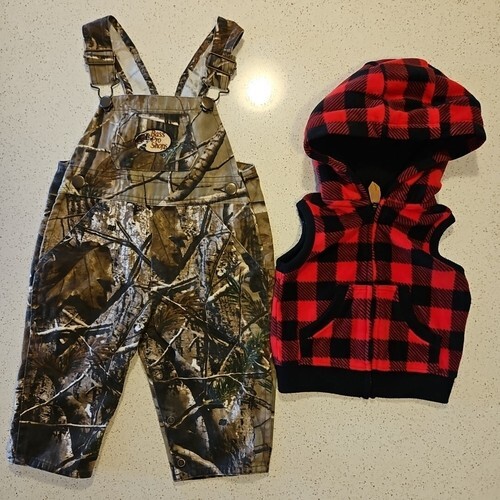 Carter's Just for You Buffalo Plaid Fleece Vest with Sherpa lined hood 6M