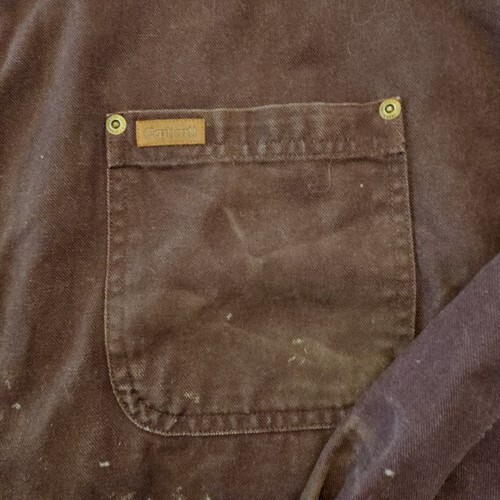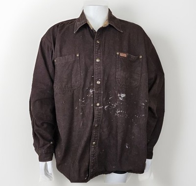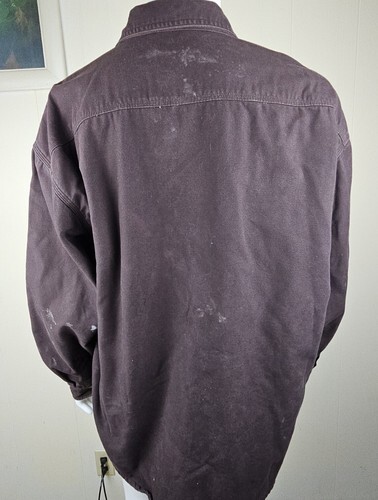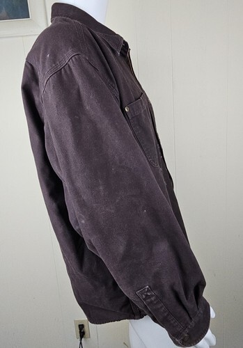 Carhartt Flannel Lined Distressed Shirt Jacket S96 Mens 2XL Heavy DKBR Canvas