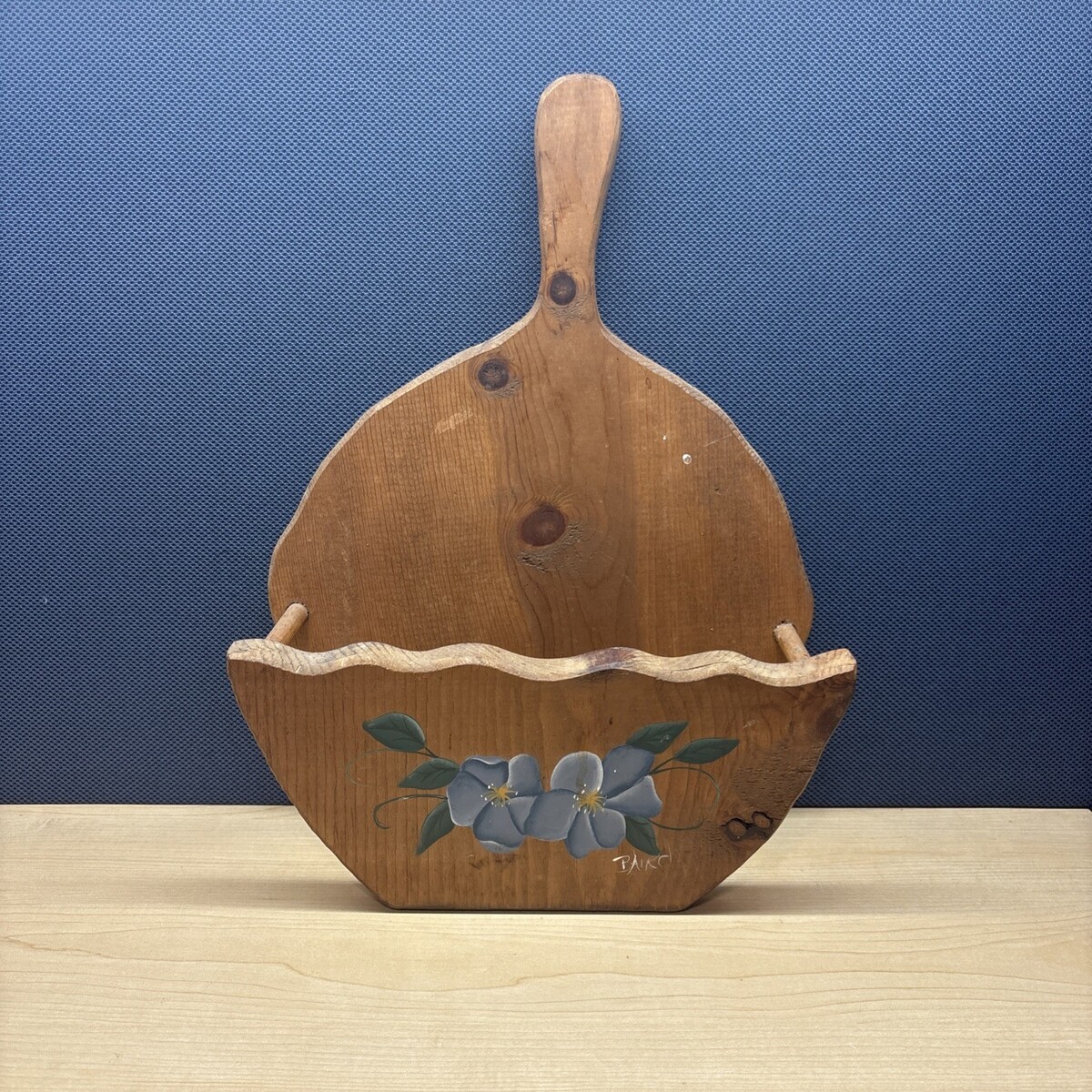 Vintage Wood China Wall Shelf Plate Rack Display Farmhouse Flower Painted.. Item is used